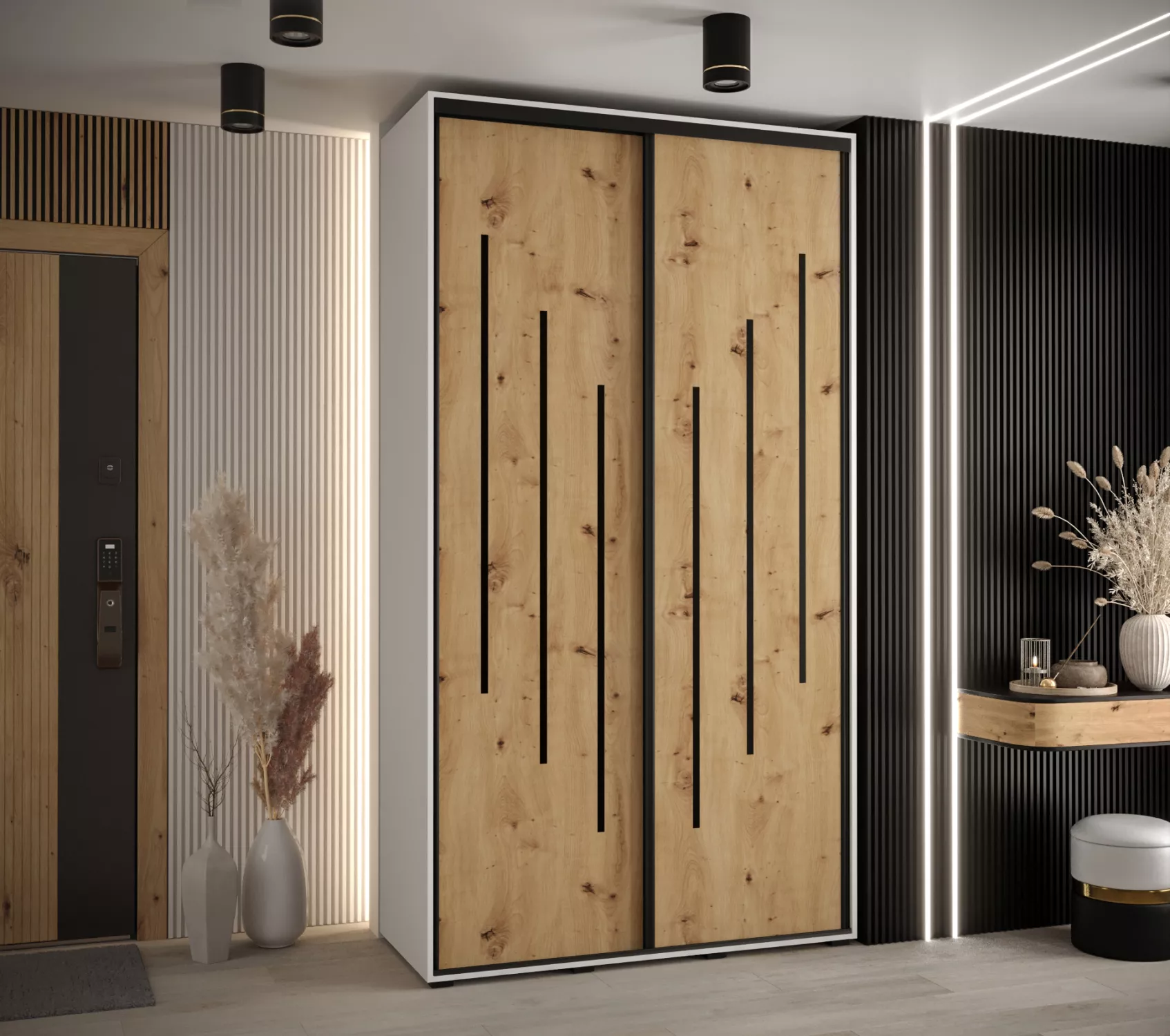 Šatní skříň ASIRI 8 - 130/60 cm, bílá / dub artisan / černá