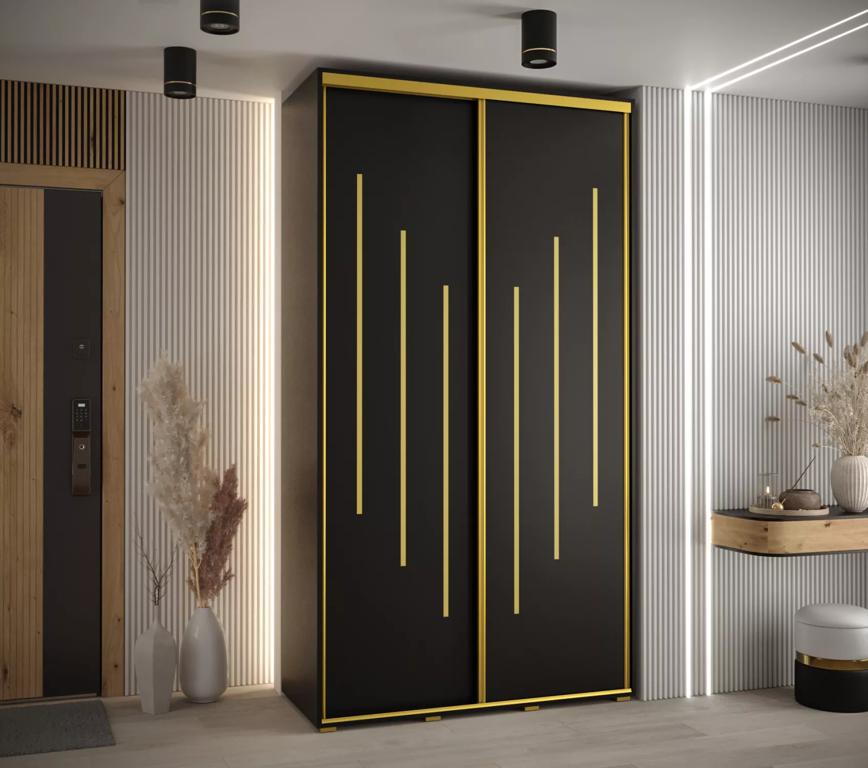 Šatní skříň ASIRI 8 - 130/60 cm, černá / zlatá