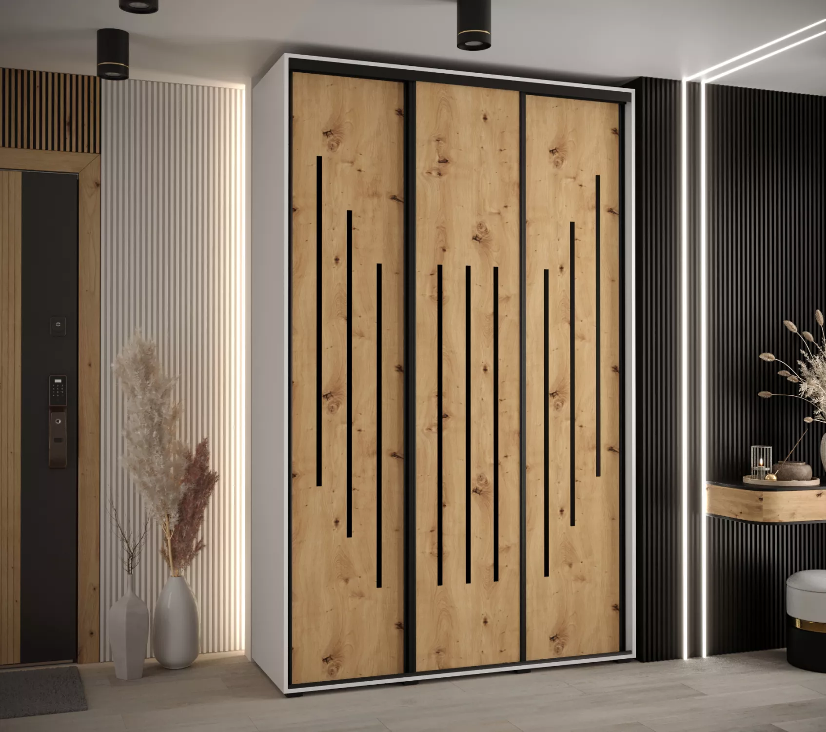 Šatní skříň ASIRI 8 - 150/60 cm, bílá / dub artisan / černá