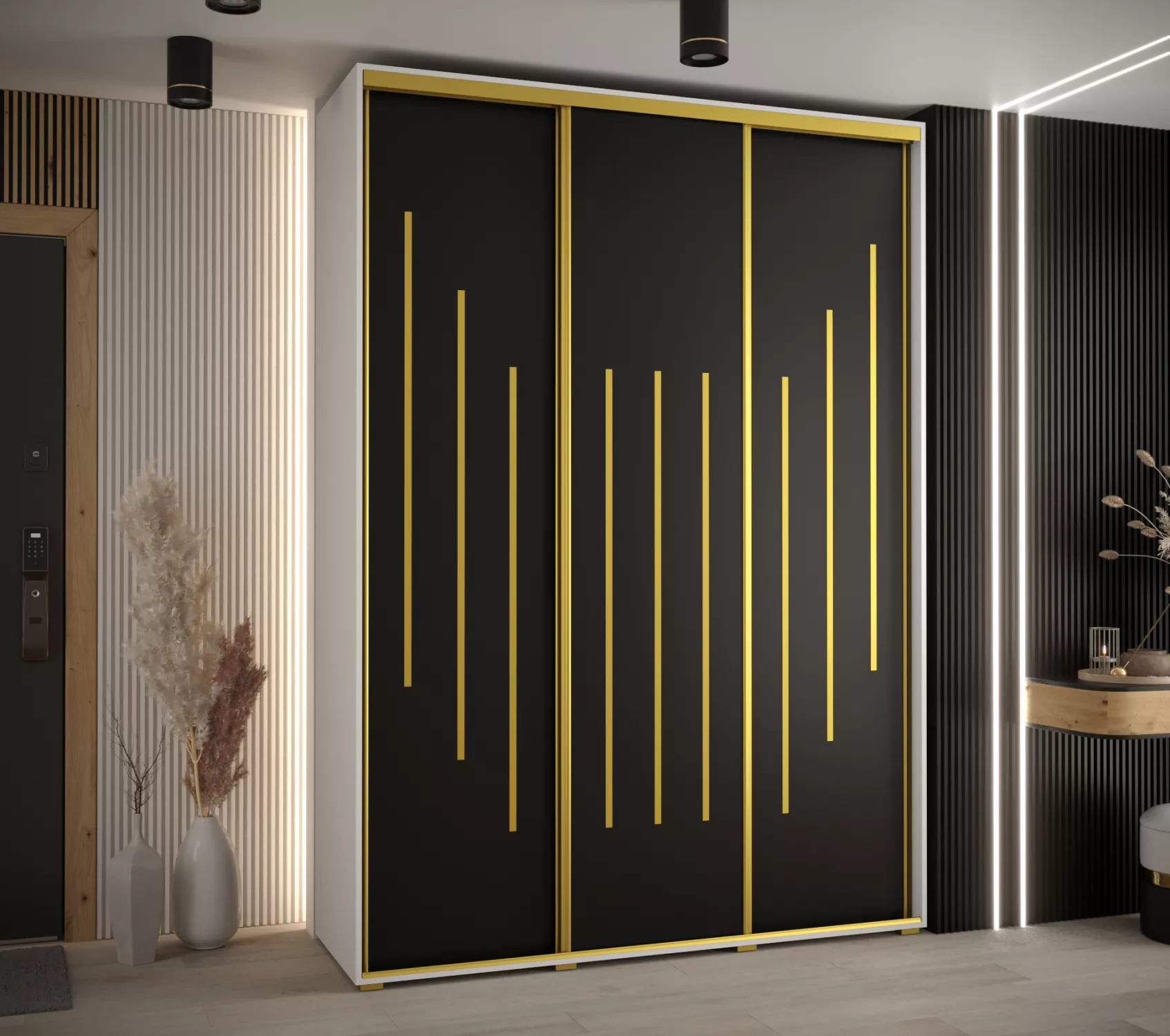 Šatní skříň ASIRI 8 - 180/60 cm, bílá / černá / zlatá