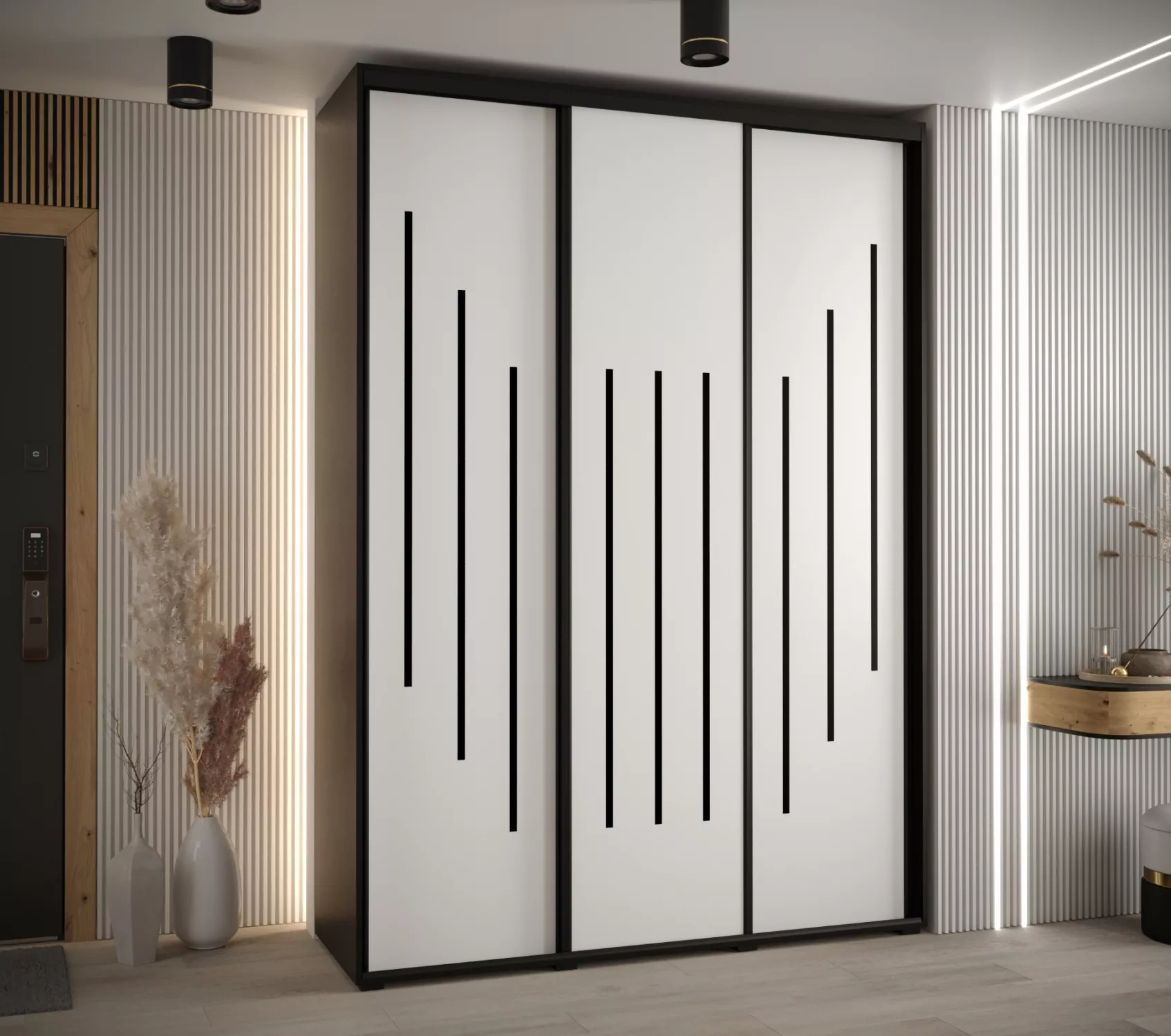 Šatní skříň ASIRI 8 - 180/60 cm, černá / bílá / černá