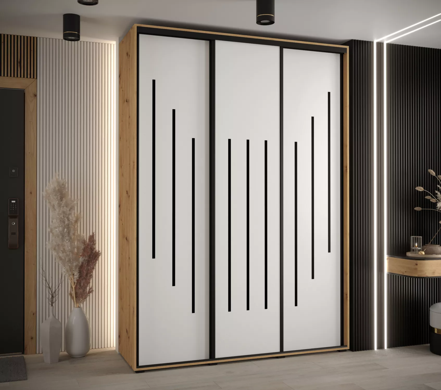 Šatní skříň ASIRI 8 - 180/60 cm, dub artisan / bílá / černá