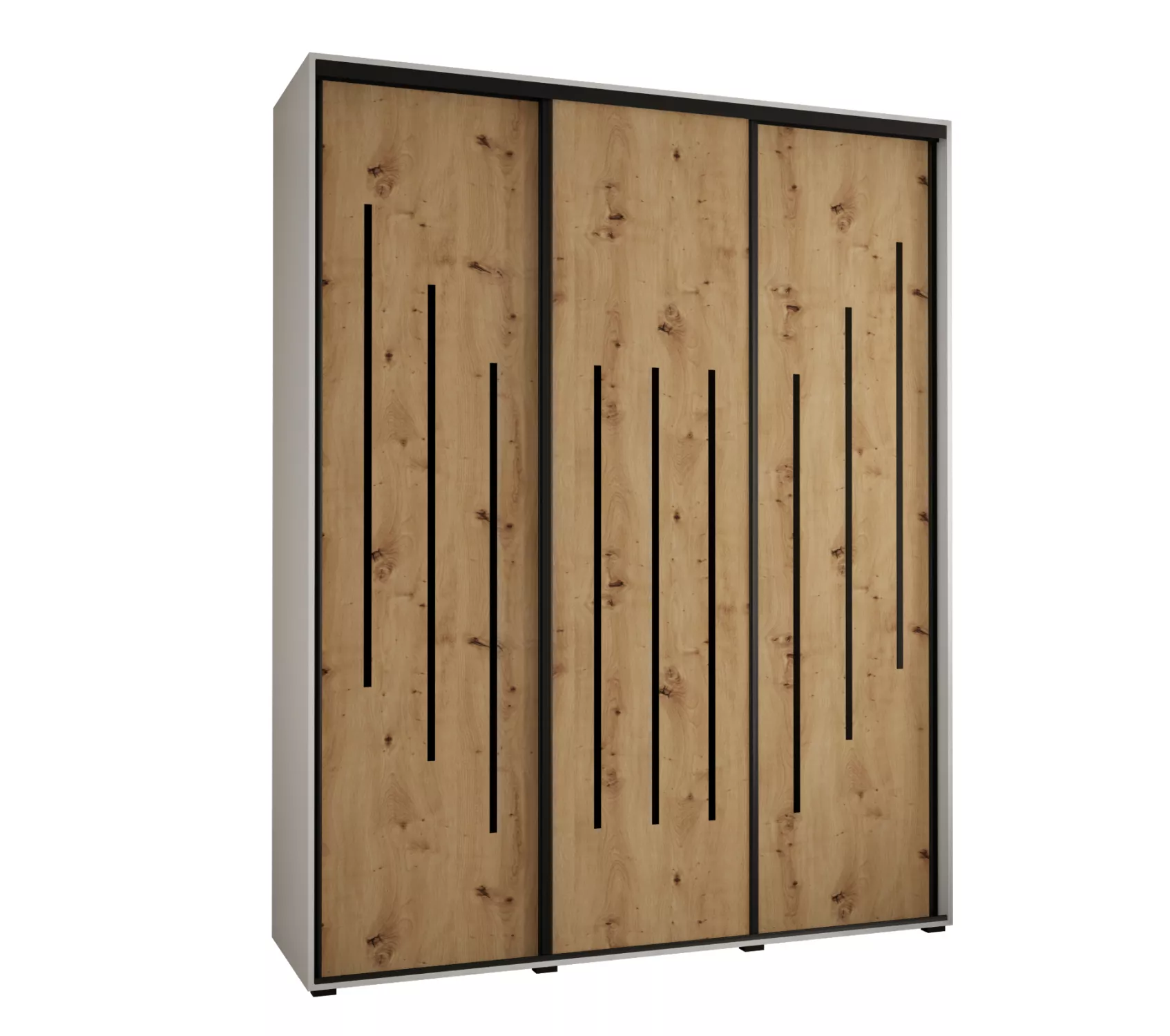 Šatní skříň ASIRI 8 - 200/60 cm, bílá / dub artisan / černá