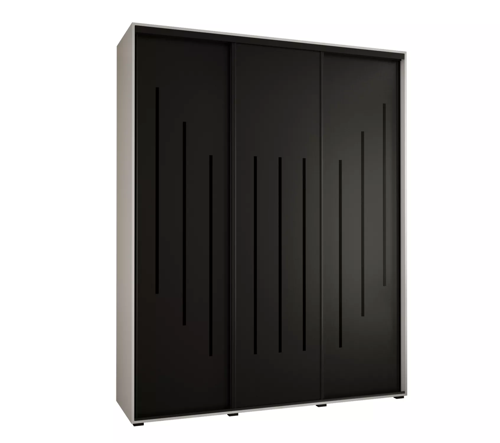 Šatní skříň ASIRI 8 - 200/60 cm, bílá / černá / černá