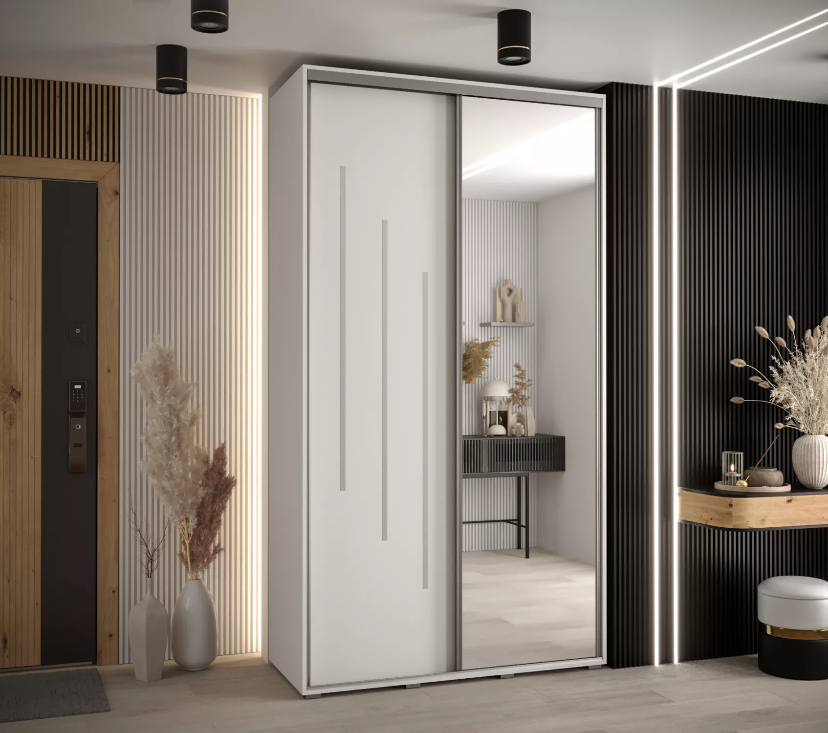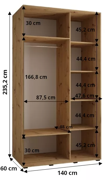Šatní skříň se zrcadlem ASIRI zaujme svým moderním designem a praktickými prvky. Skříň má posuvné dveře, které se neotvírají do prostoru a ušetří tak spoustu místa. Vnitřek skříně lze uspořádat dle vašich potřeb.