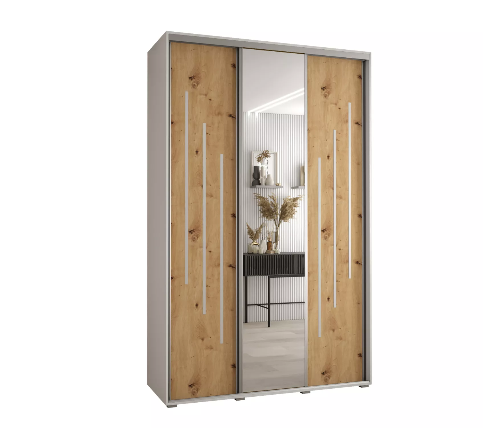 Šatní skříň ASIRI 9 - 150/60 cm, bílá / dub artisan / stříbrná