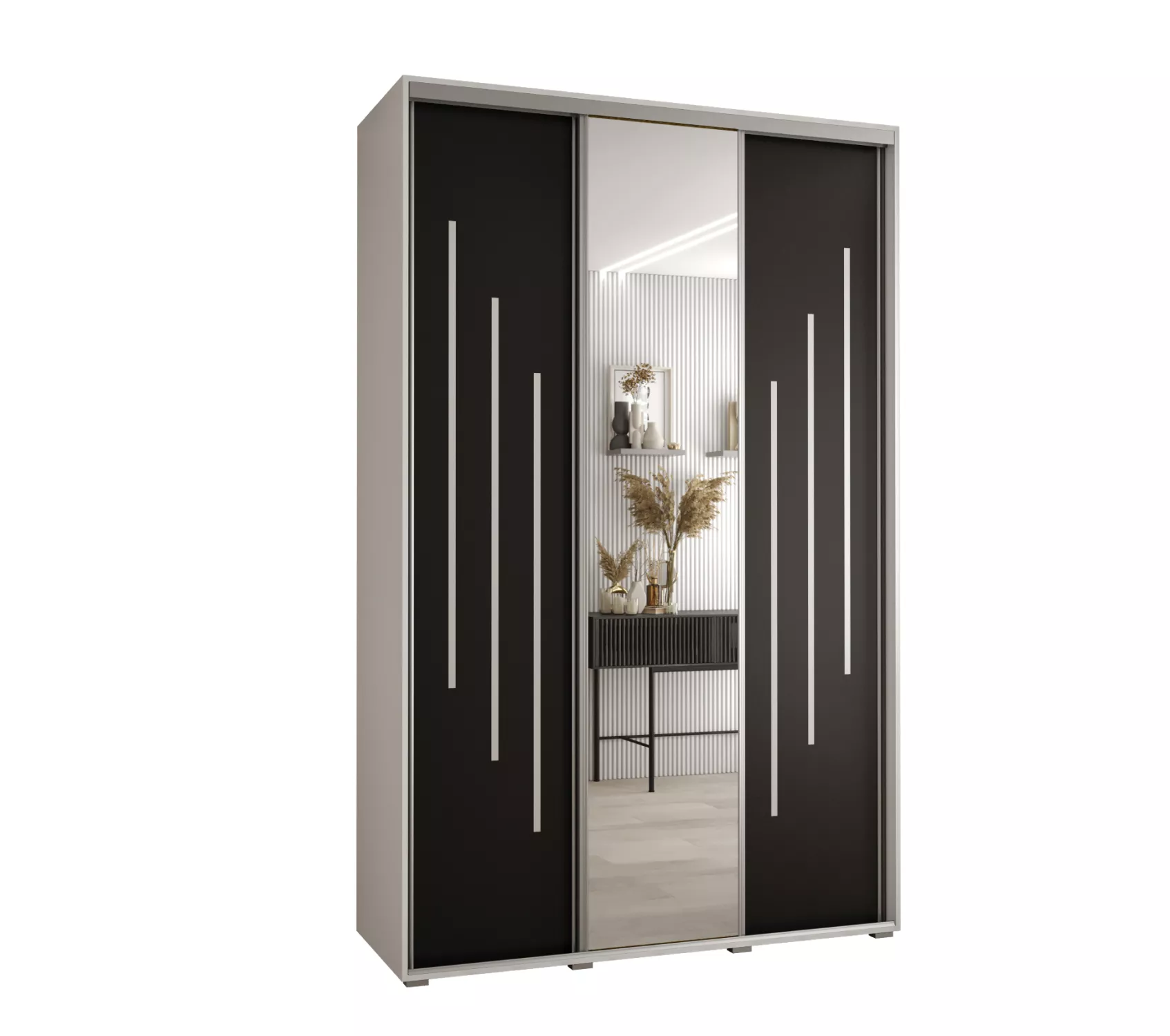 Šatní skříň ASIRI 9 - 160/60 cm, bílá / černá / stříbrná