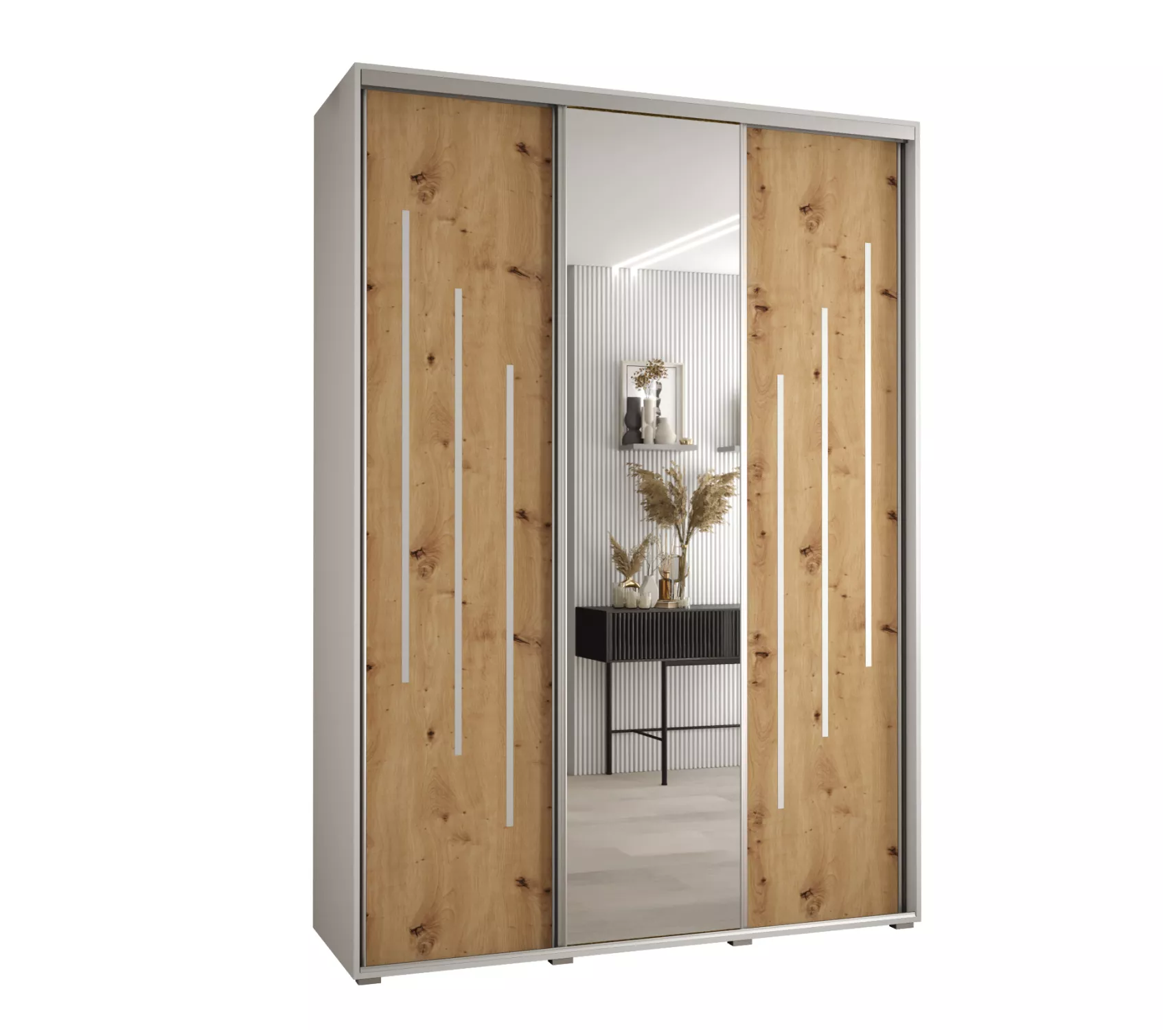 Šatní skříň ASIRI 9 - 170/60 cm, bílá / dub artisan / stříbrná