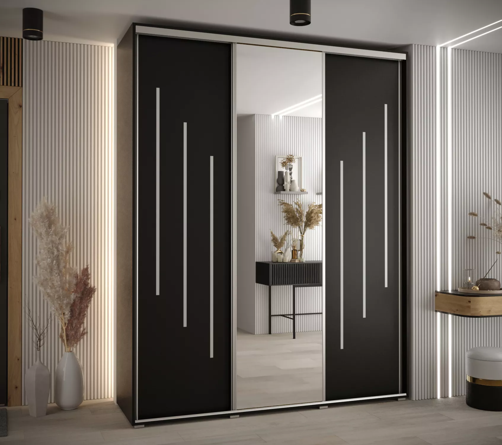 Velká šatní skříň se zrcadlem ASIRI zaujme svým moderním designem a praktickými prvky. Skříň má posuvné dveře, které se neotvírají do prostoru a ušetří tak spoustu místa. Vnitřek skříně lze uspořádat dle vašich potřeb.
