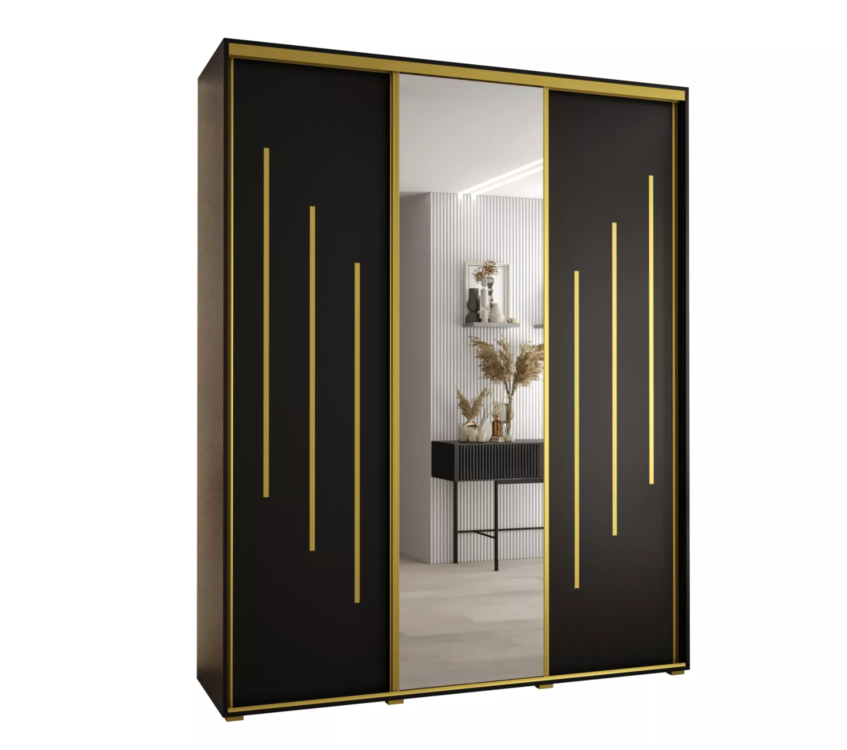 Šatní skříň ASIRI 9 - 190/60 cm, černá / zlatá