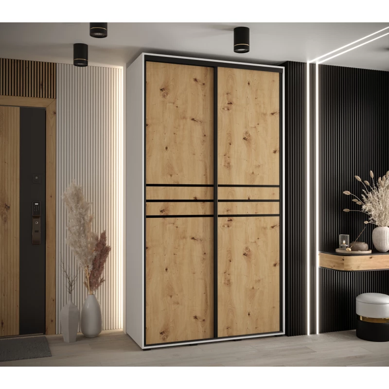 Šatní skříň ASIRI 10 - 130/60 cm, bílá / dub artisan / černá