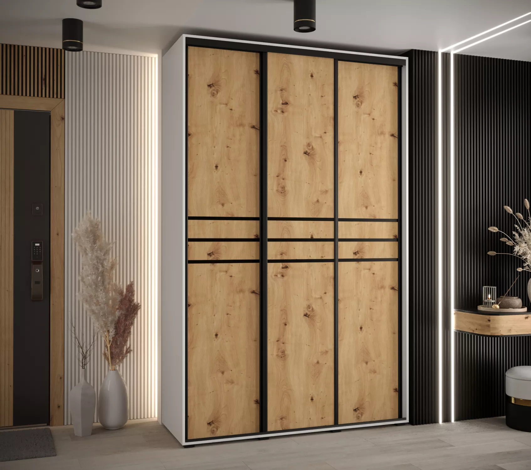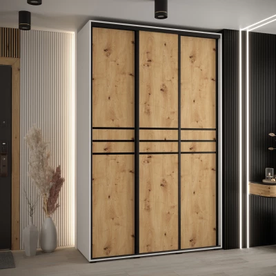 Šatní skříň ASIRI 10 - 150/60 cm, bílá / dub artisan / černá
