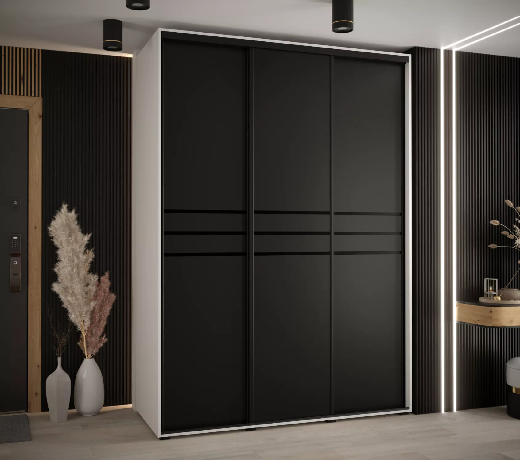Šatní skříň ASIRI 10 - 170/60 cm, bílá / černá / černá