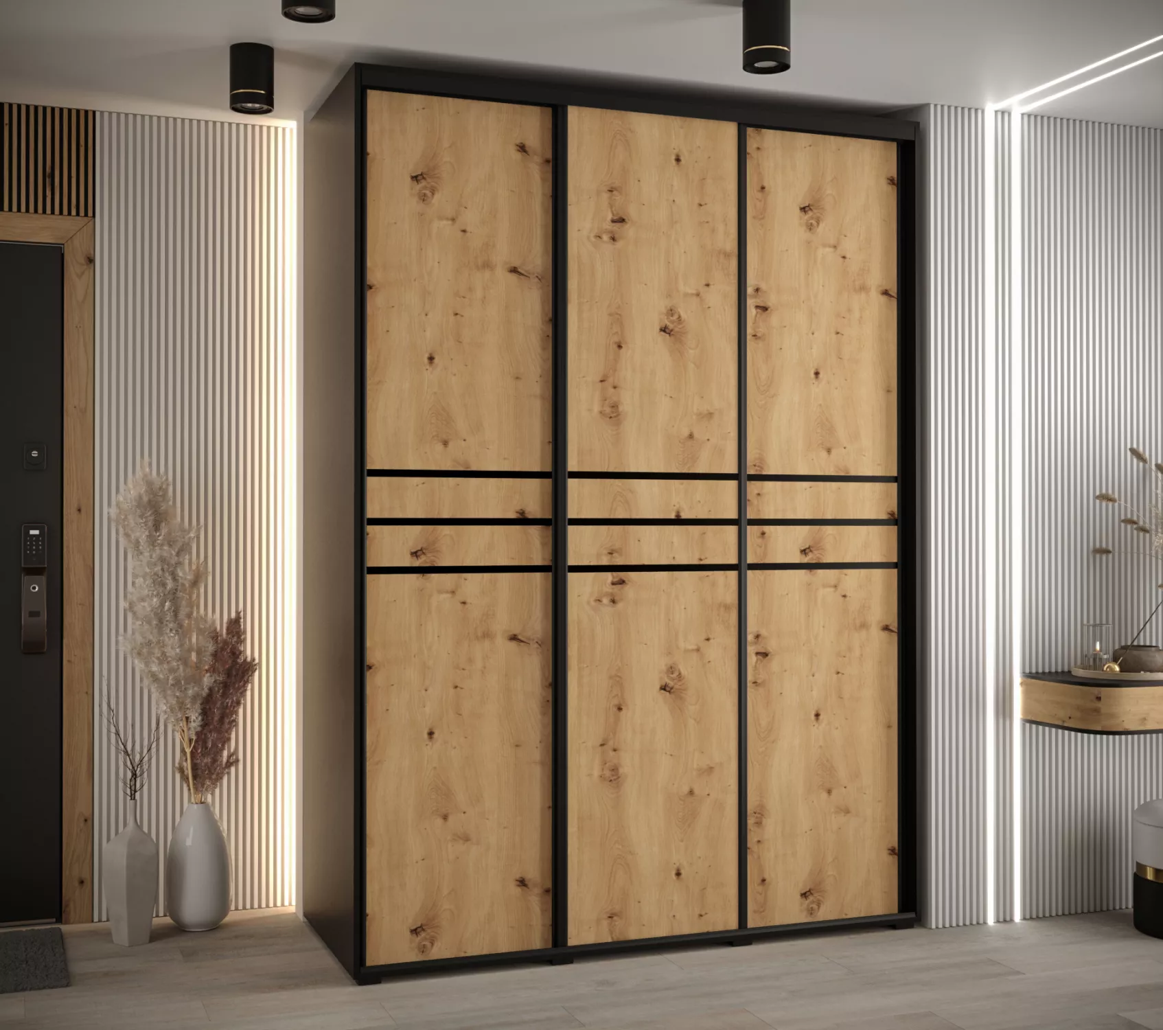 Šatní skříň ASIRI 10 - 170/60 cm, černá / dub artisan / černá