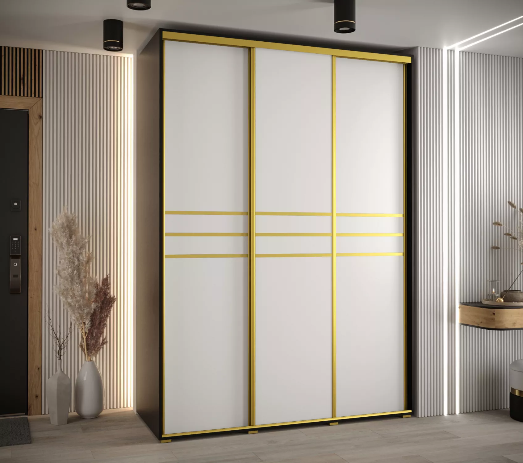 Šatní skříň ASIRI 10 - 170/60 cm, černá / bílá / zlatá