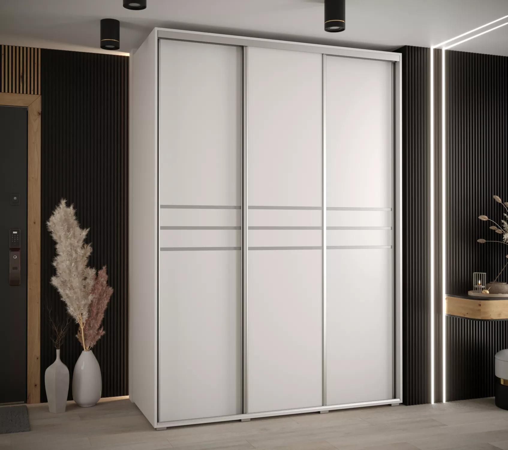 Velká šatní skříň ASIRI zaujme svým moderním designem a praktickými prvky. Skříň má posuvné dveře, které se neotvírají do prostoru a ušetří tak spoustu místa. Vnitřek skříně lze uspořádat dle vašich potřeb.