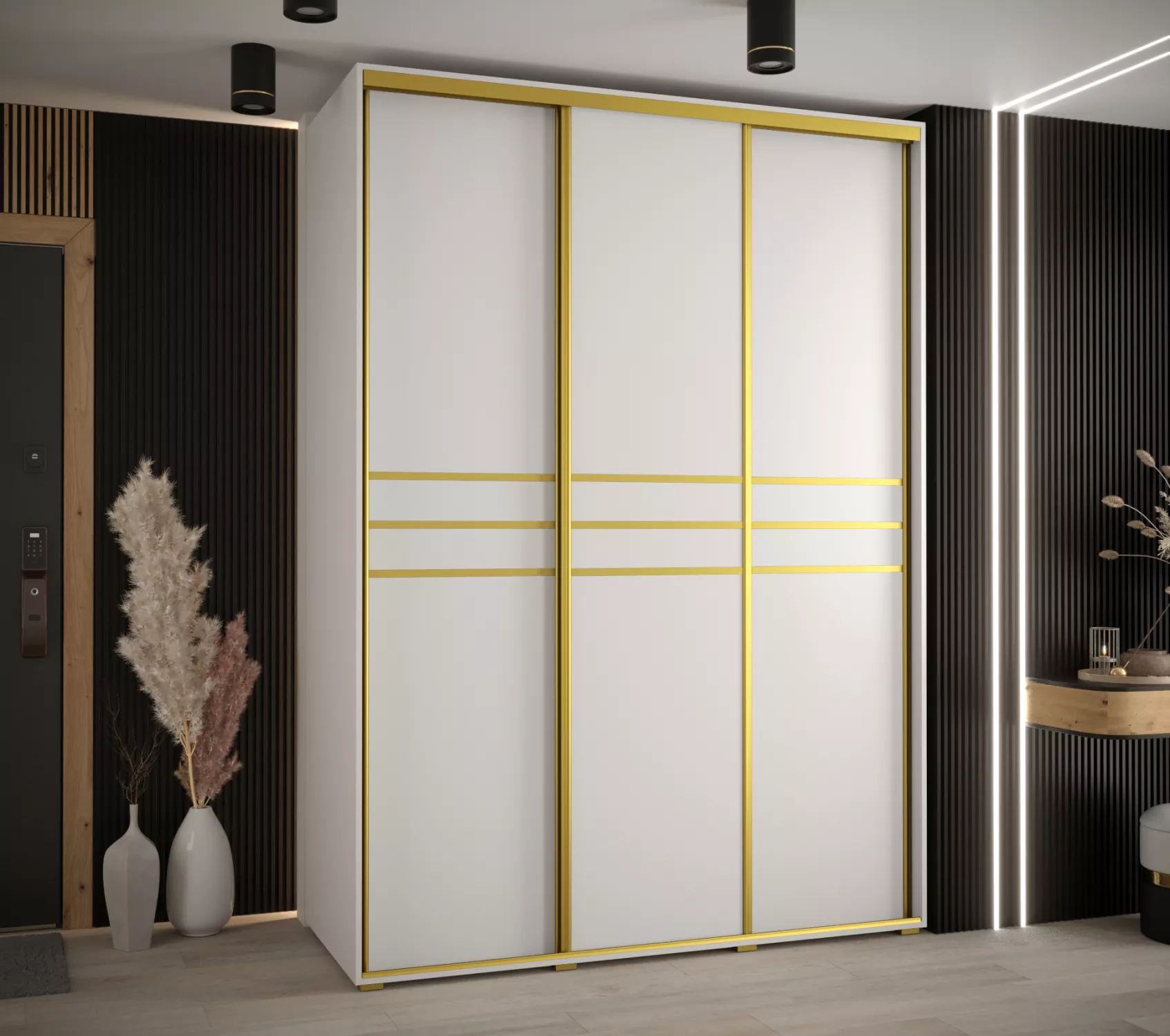 Šatní skříň ASIRI 10 - 180/60 cm, bílá / zlatá