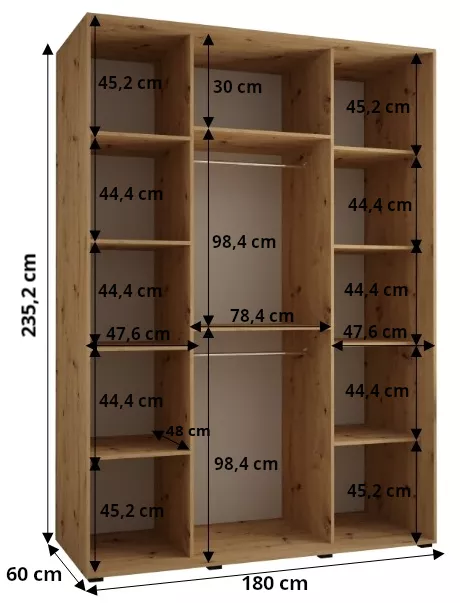 Velká šatní skříň ASIRI zaujme svým moderním designem a praktickými prvky. Skříň má posuvné dveře, které se neotvírají do prostoru a ušetří tak spoustu místa. Vnitřek skříně lze uspořádat dle vašich potřeb.