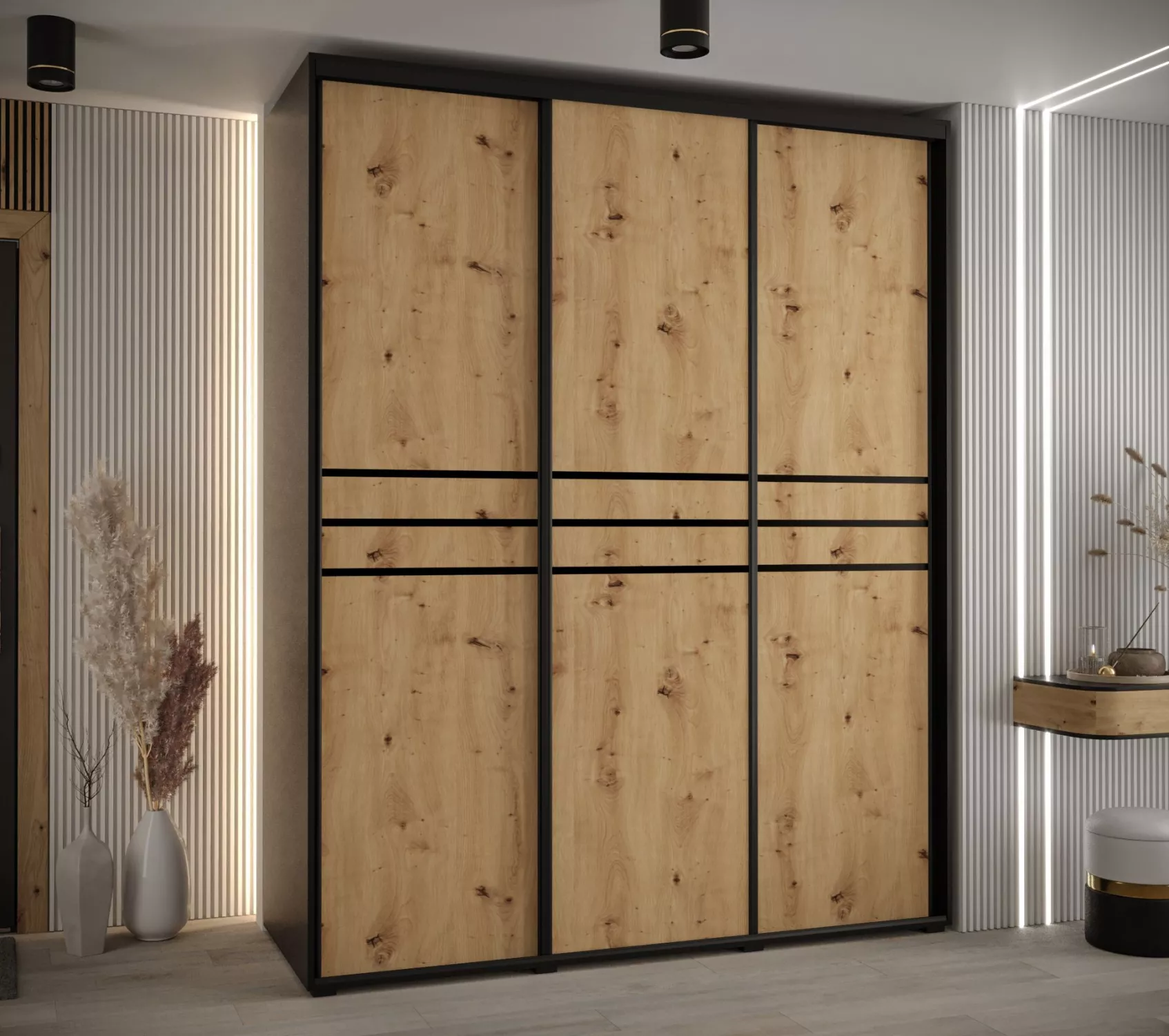 Šatní skříň ASIRI 10 - 190/60 cm, černá / dub artisan / černá