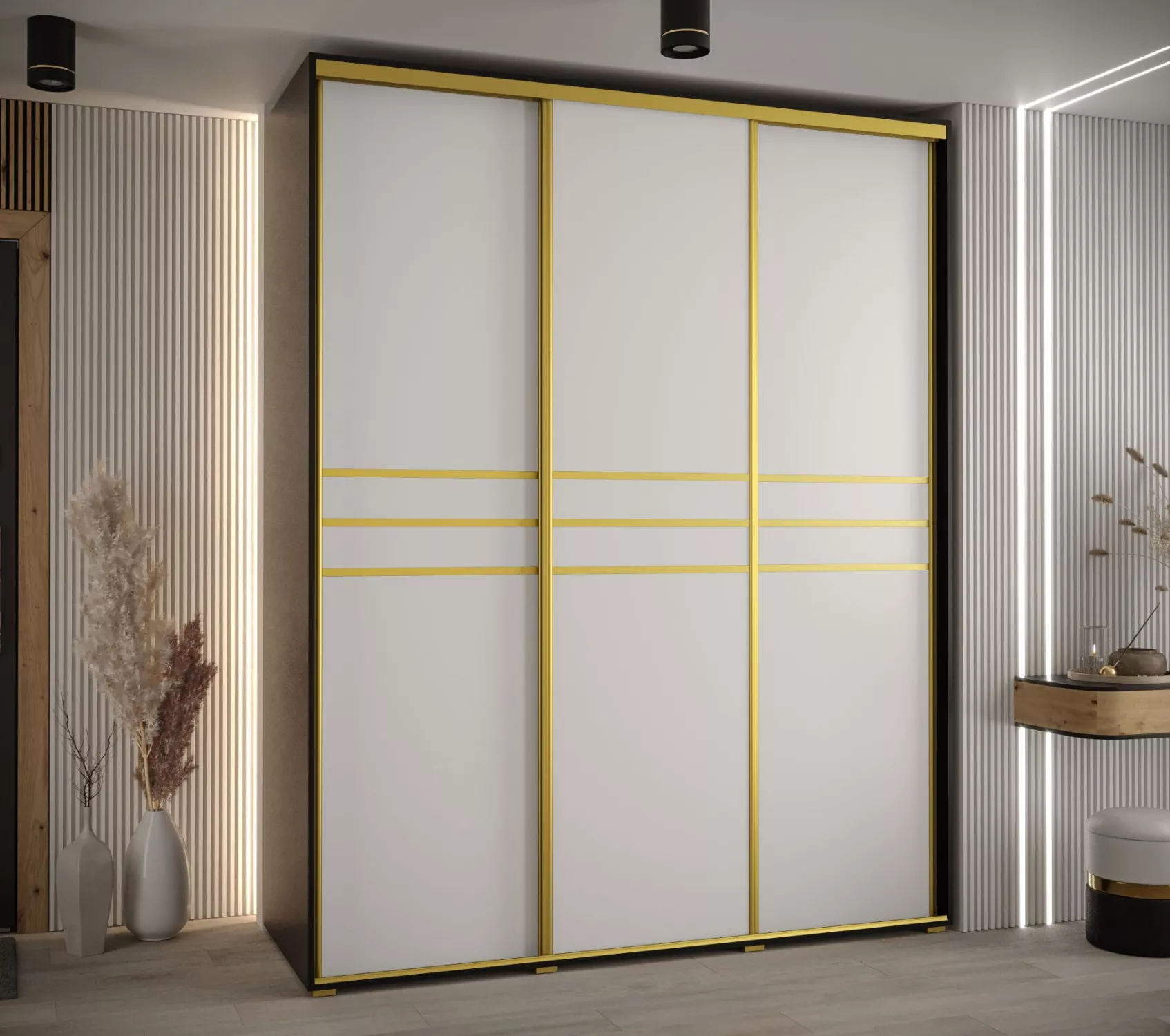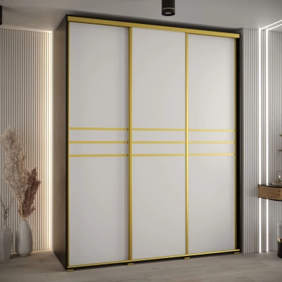 Šatní skříň ASIRI 10 - 190/60 cm, černá / bílá / zlatá