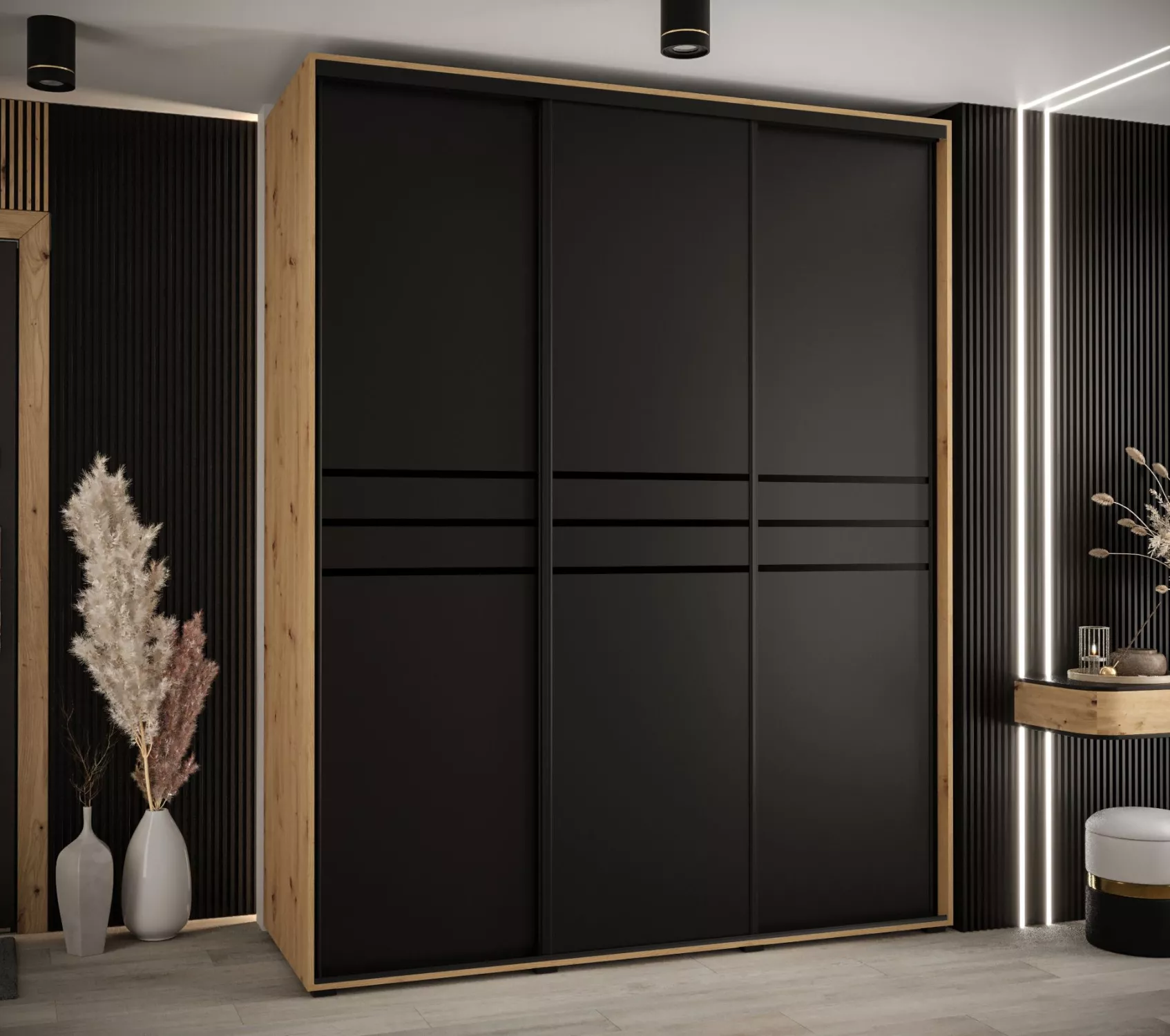 Šatní skříň ASIRI 10 - 190/60 cm, dub artisan / černá / černá