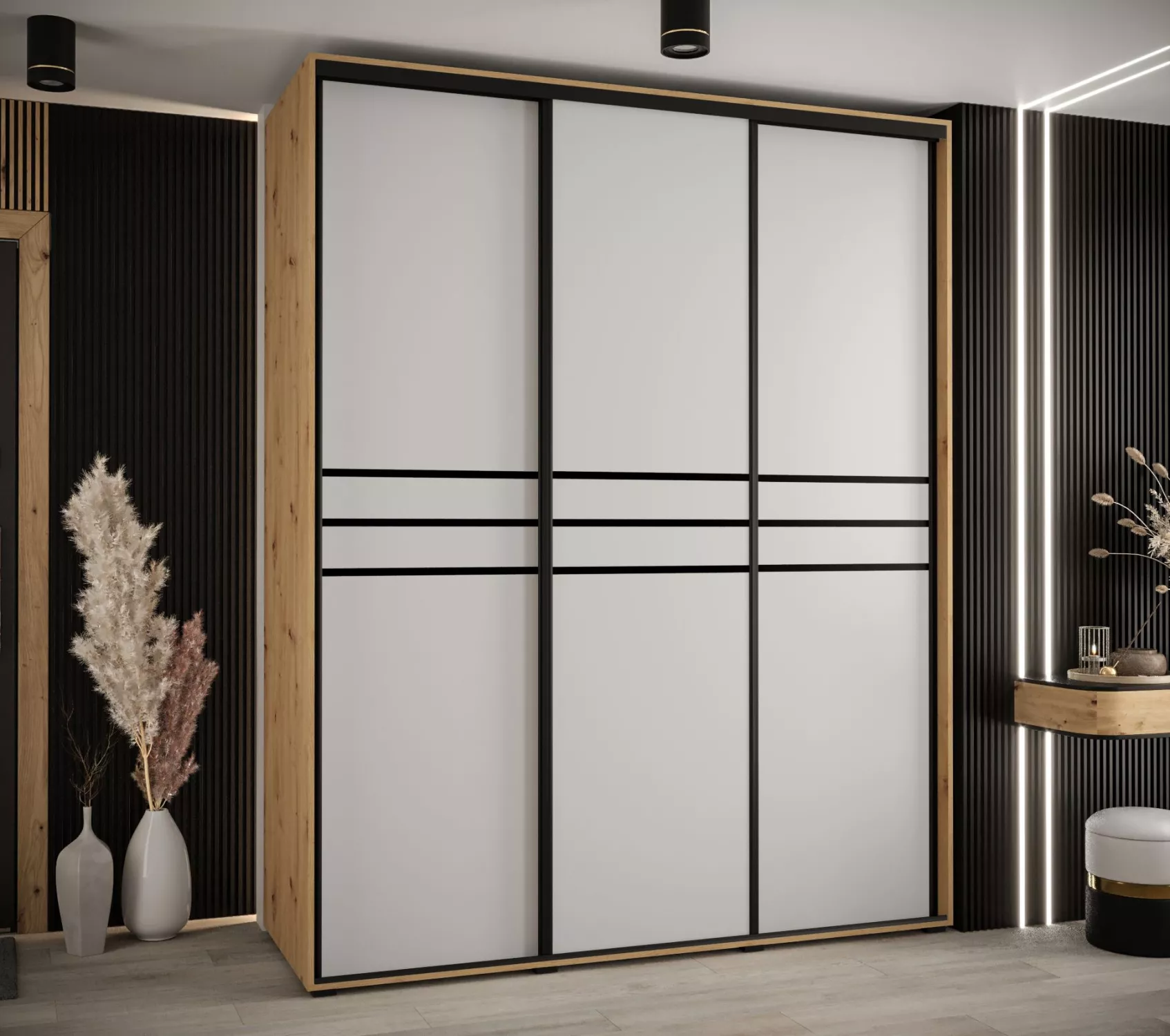 Šatní skříň ASIRI 10 - 200/60 cm, dub artisan / bílá / černá