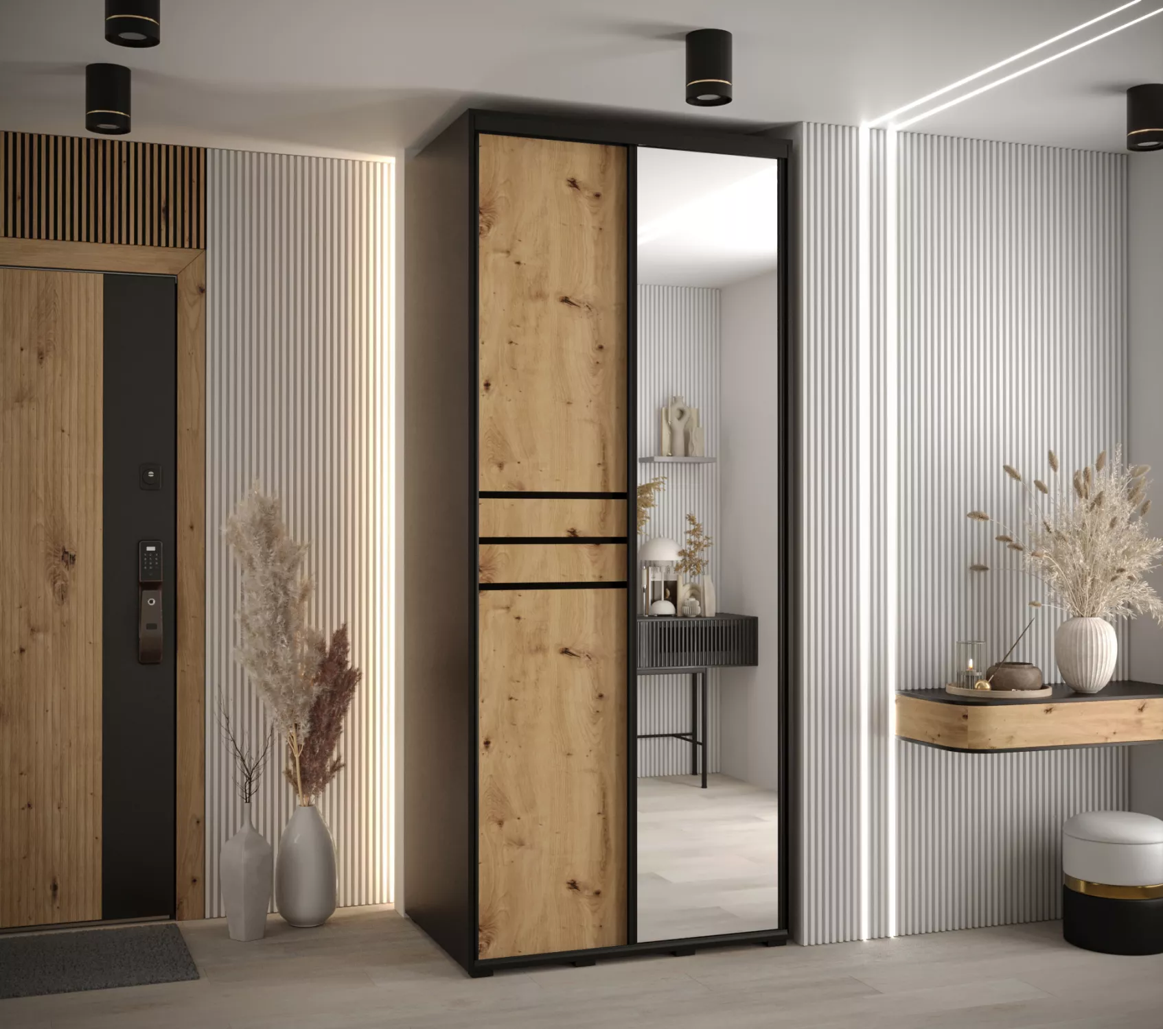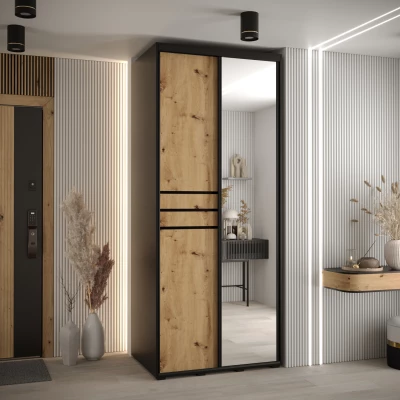 Šatní skříň ASIRI 11 - 100/60 cm, černá / dub artisan / černá