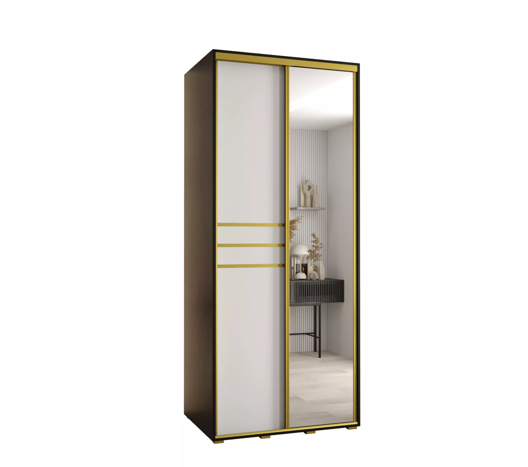 Šatní skříň ASIRI 11 - 110/60 cm, černá / bílá / zlatá