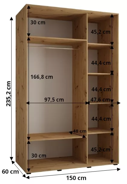 Vysoká zrcadlová šatní skříň ASIRI zaujme svým moderním designem a praktickými prvky. Skříň má posuvné dveře, které se neotvírají do prostoru a ušetří tak spoustu místa. Vnitřek skříně lze uspořádat dle vašich potřeb.