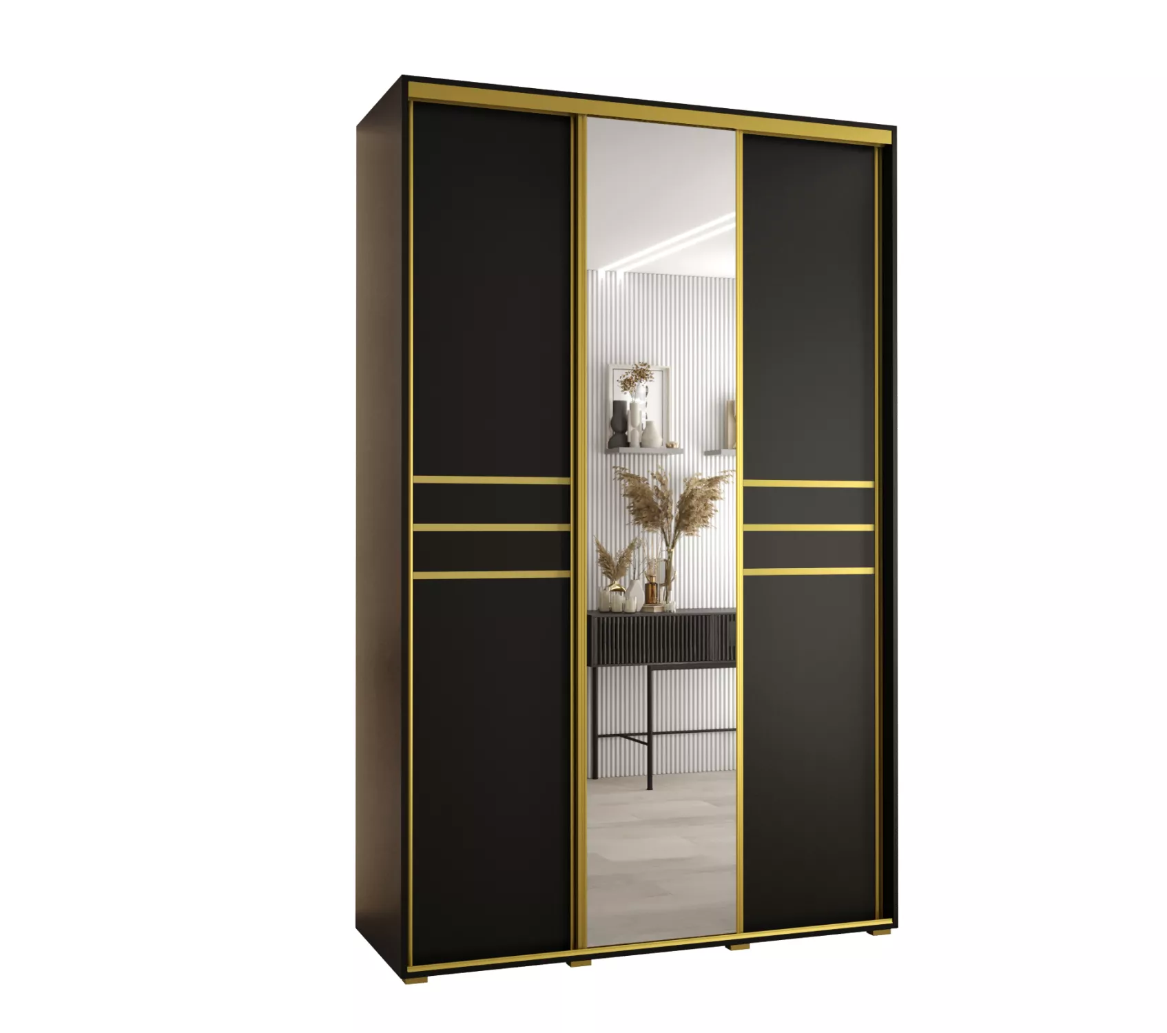 Šatní skříň ASIRI 11 - 150/60 cm, černá / zlatá