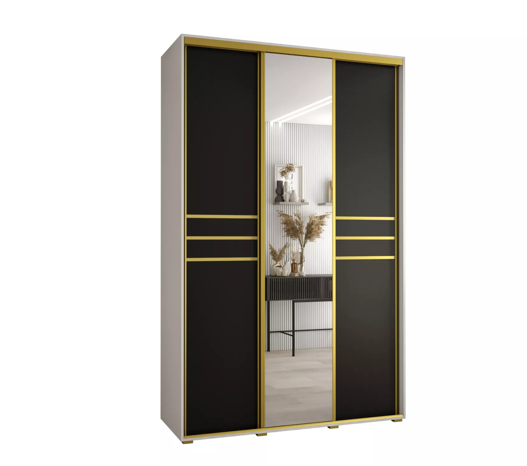 Šatní skříň ASIRI 11 - 160/60 cm, bílá / černá / zlatá