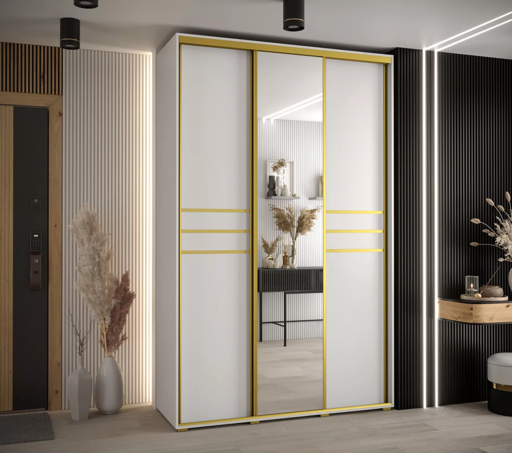 Šatní skříň ASIRI 11 - 160/60 cm, bílá / zlatá