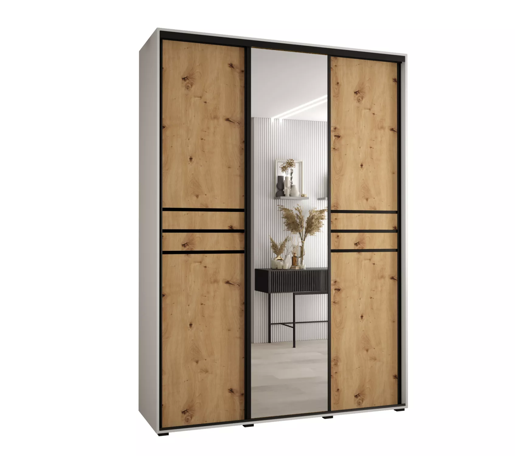 Šatní skříň ASIRI 11 - 180/60 cm, bílá / dub artisan / černá