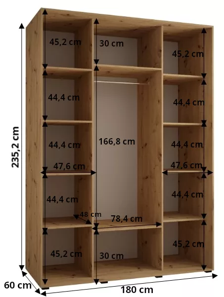 Velká šatní skříň se zrcadlem ASIRI zaujme svým moderním designem a praktickými prvky. Skříň má posuvné dveře, které se neotvírají do prostoru a ušetří tak spoustu místa. Vnitřek skříně lze uspořádat dle vašich potřeb.