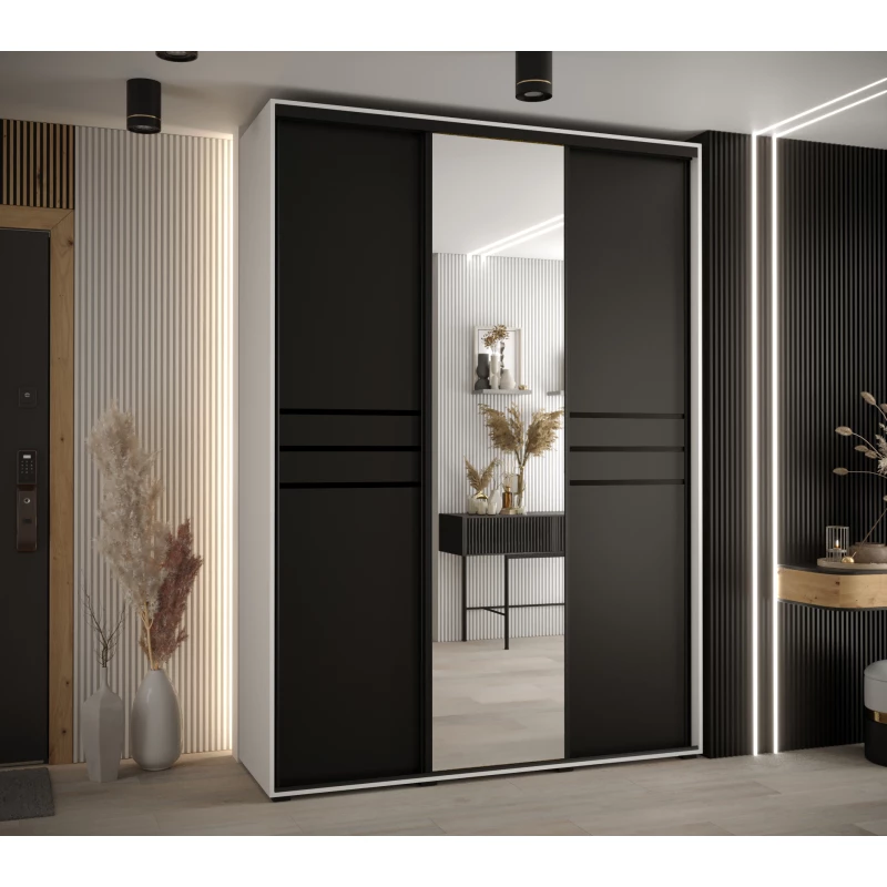 Šatní skříň ASIRI 11 - 180/60 cm, bílá / černá / černá