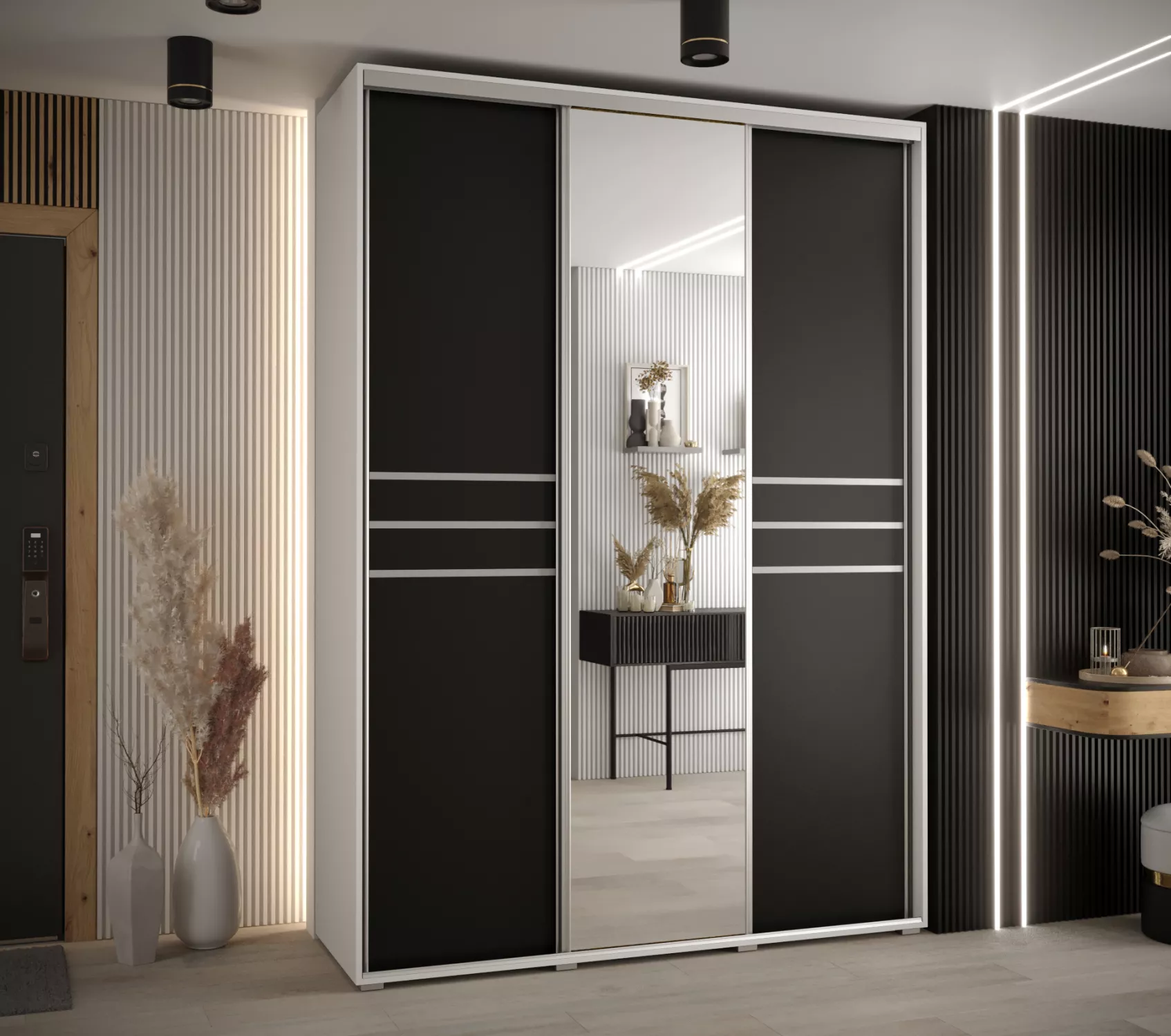 Velká šatní skříň se zrcadlem ASIRI zaujme svým moderním designem a praktickými prvky. Skříň má posuvné dveře, které se neotvírají do prostoru a ušetří tak spoustu místa. Vnitřek skříně lze uspořádat dle vašich potřeb.