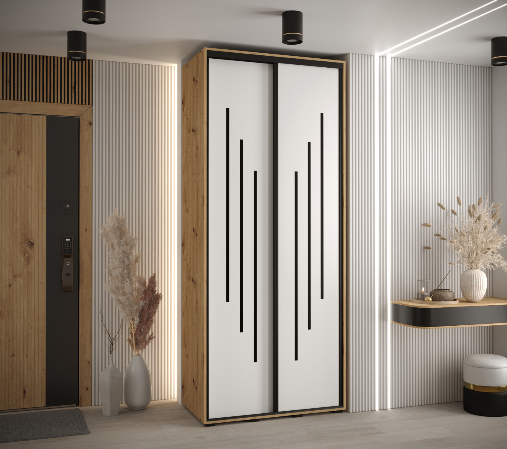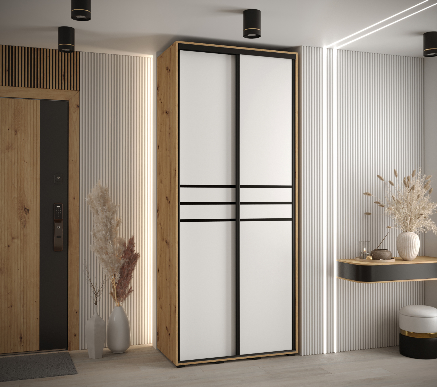 Šatní skříň ASIRI 12 - 110/60 cm, bílá / dub artisan / černá