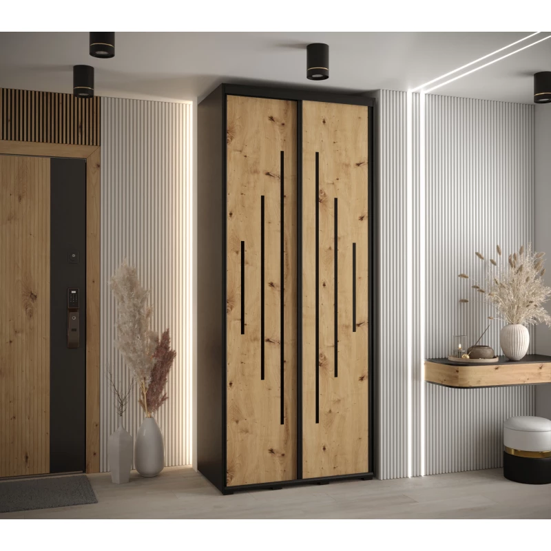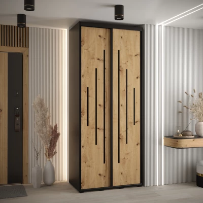 Šatní skříň ASIRI 12 - 110/60 cm, černá / dub artisan / černá