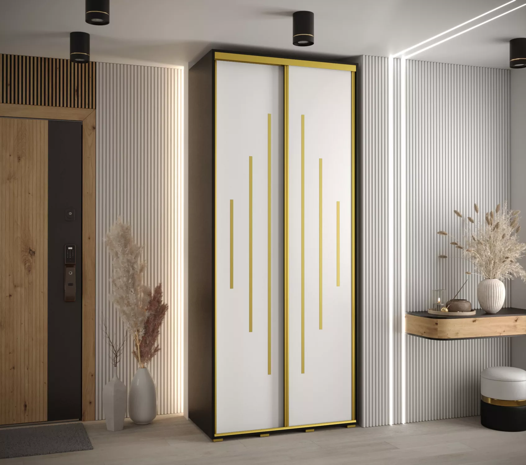 Šatní skříň ASIRI 12 - 110/60 cm, černá / bílá / zlatá