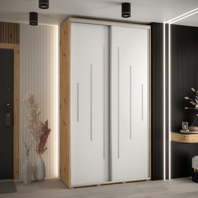 Šatní skříň ASIRI 12 - 140/60 cm, dub artisan / bílá / stříbrná