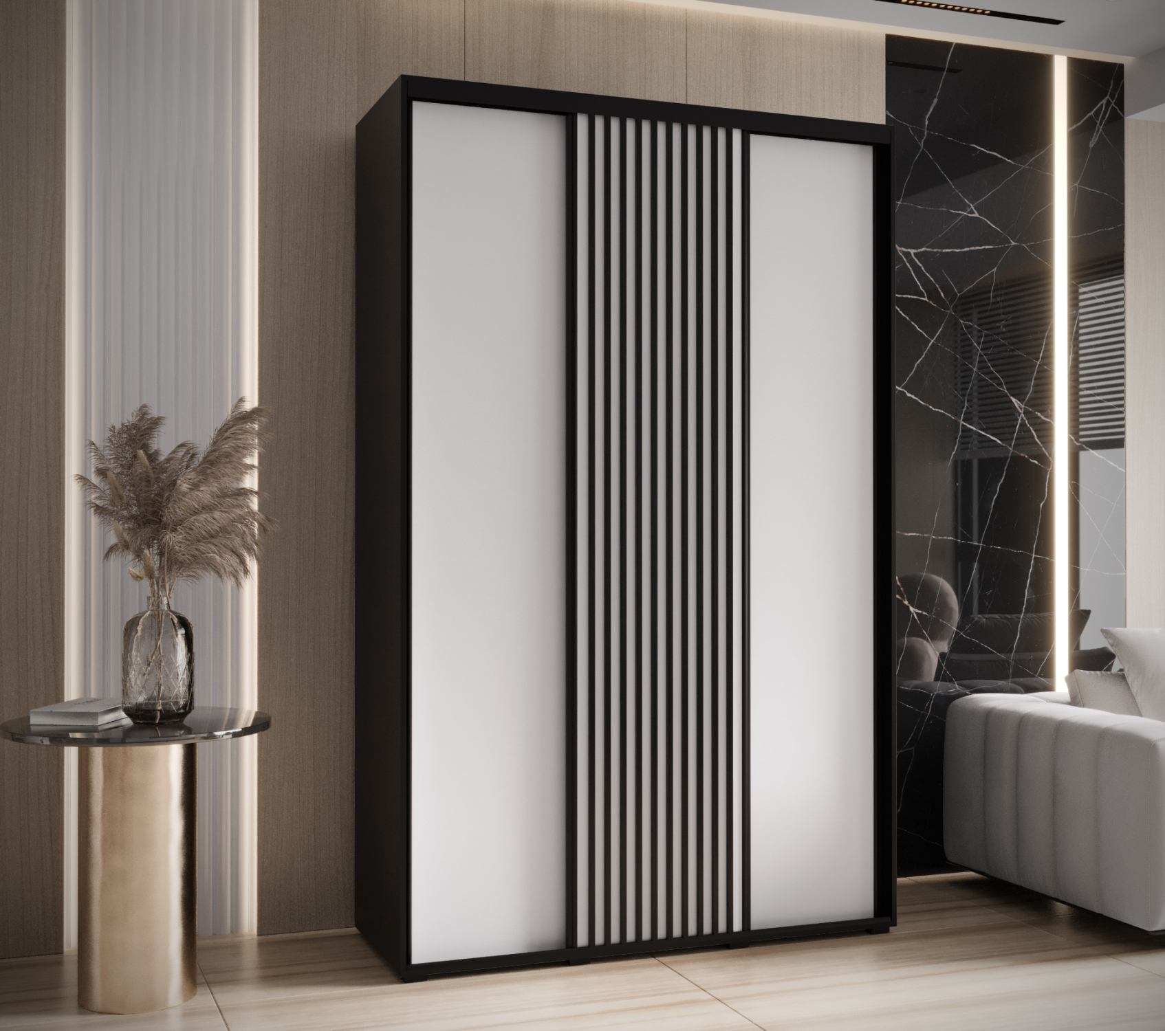 Šatní skříň ASIRI 12 - 160/60 cm, bílá / černá / černá