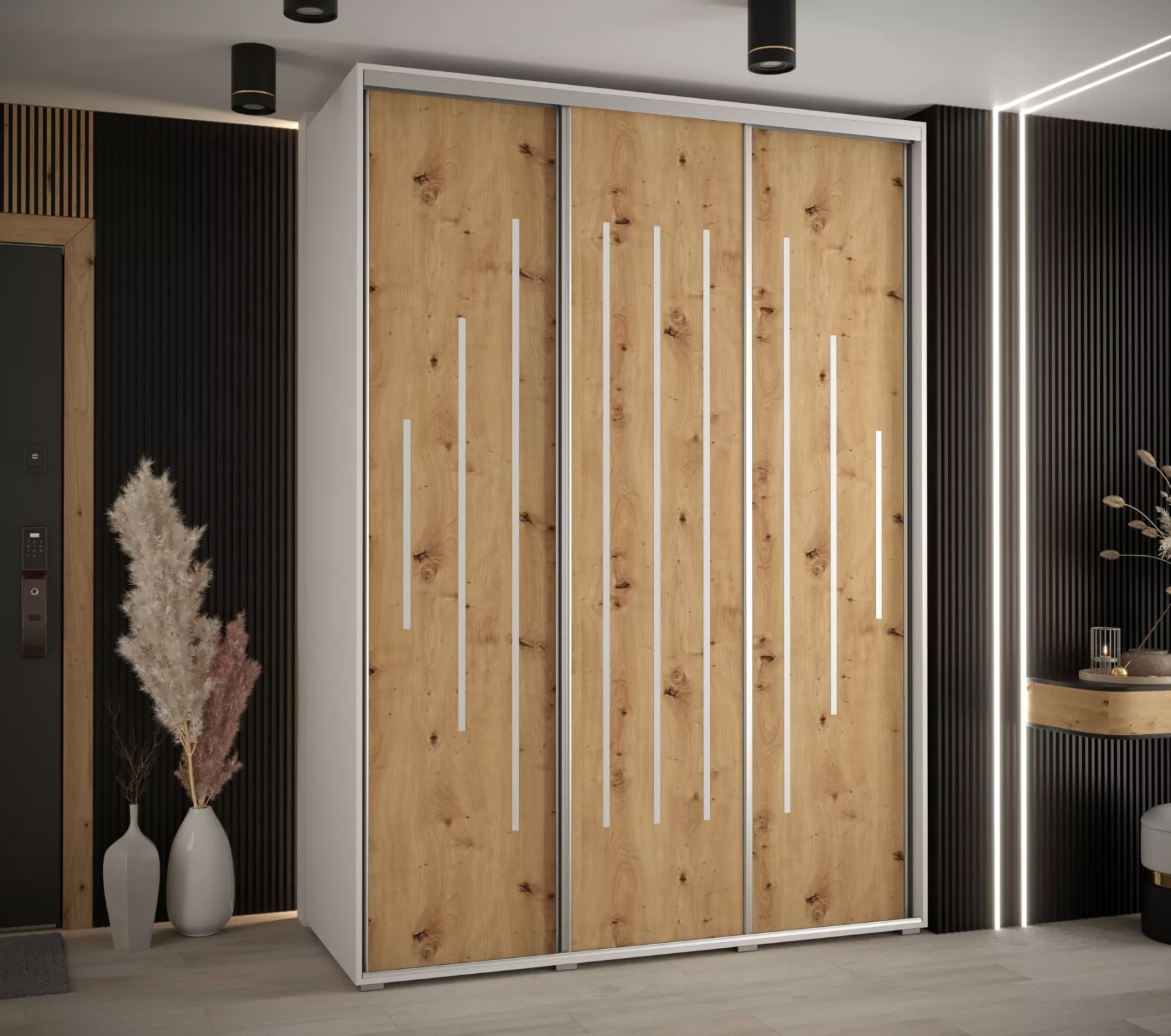 Šatní skříň ASIRI 12 - 170/60 cm, bílá / dub artisan / stříbrná