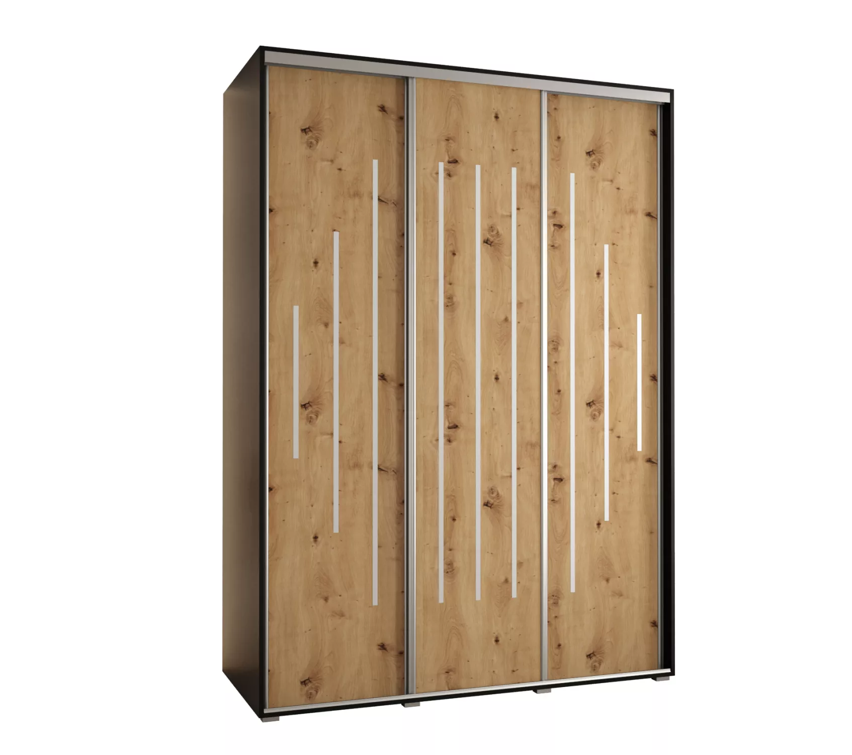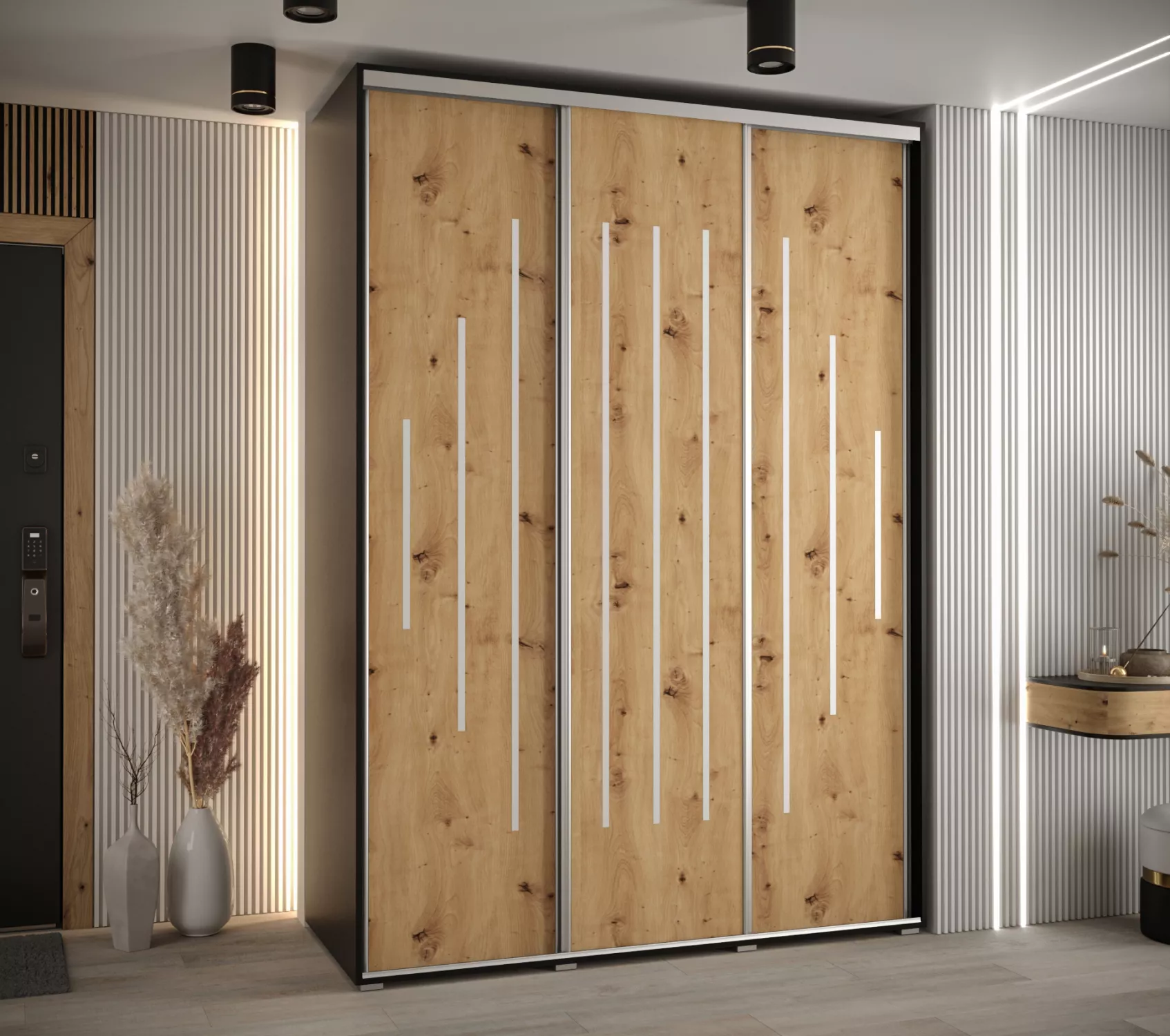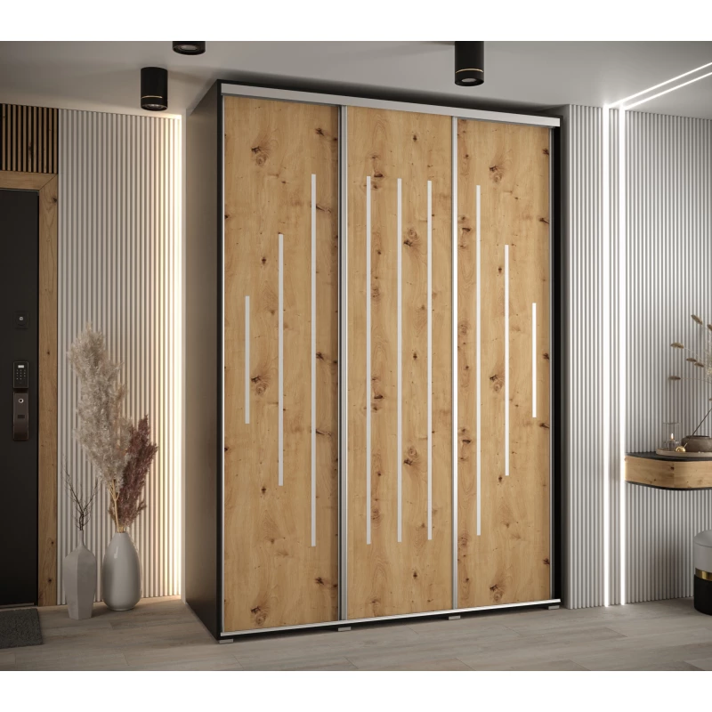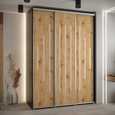 Šatní skříň ASIRI 12 - 170/60 cm, černá / dub artisan / stříbrná