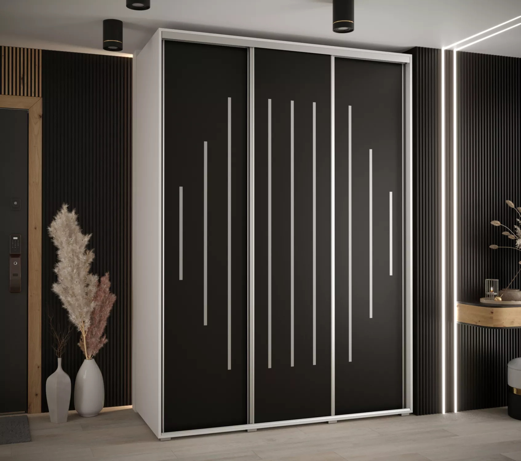 Šatní skříň ASIRI 12 - 180/60 cm, bílá / černá / stříbrná