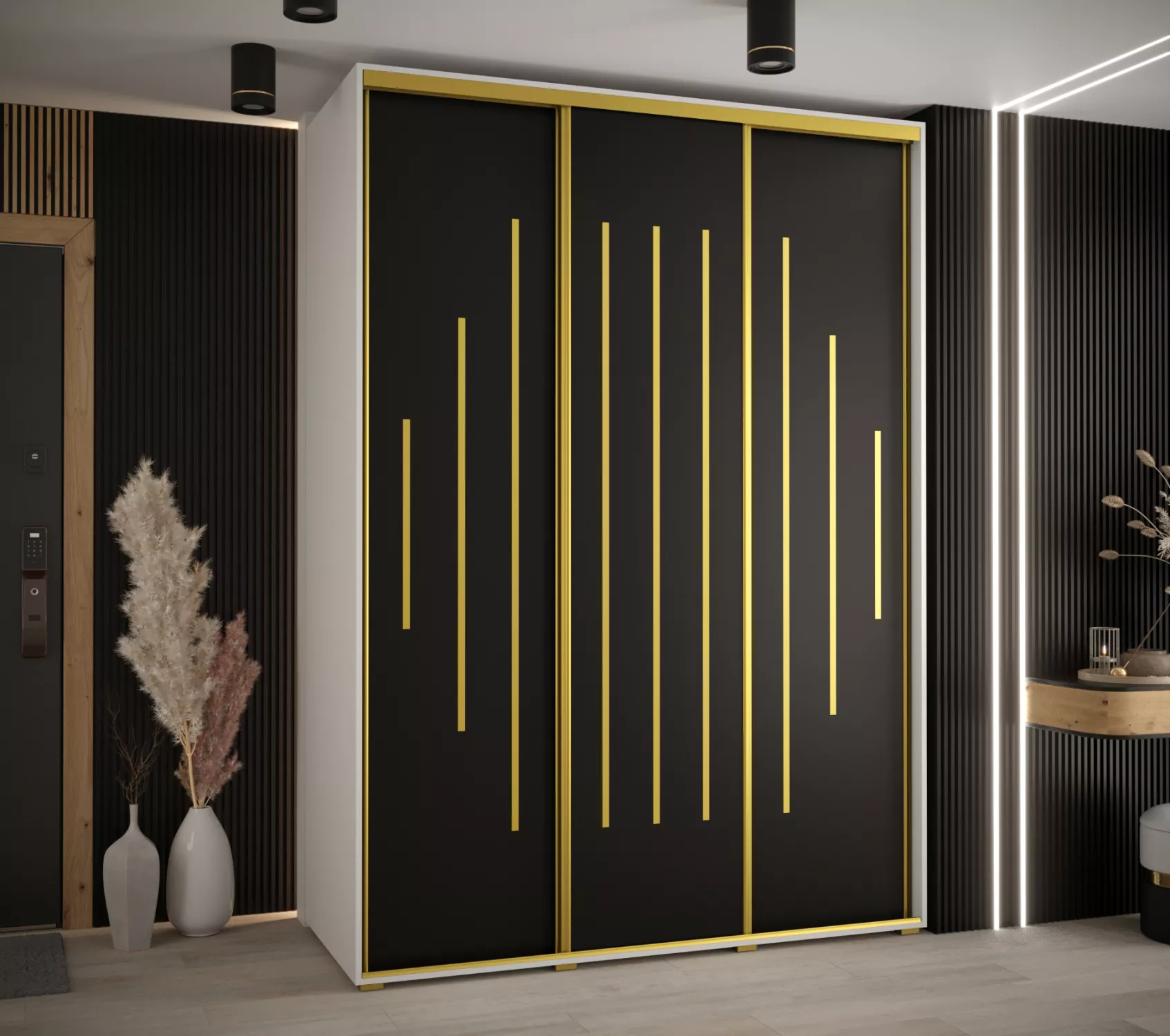 Šatní skříň ASIRI 12 - 180/60 cm, bílá / černá / zlatá