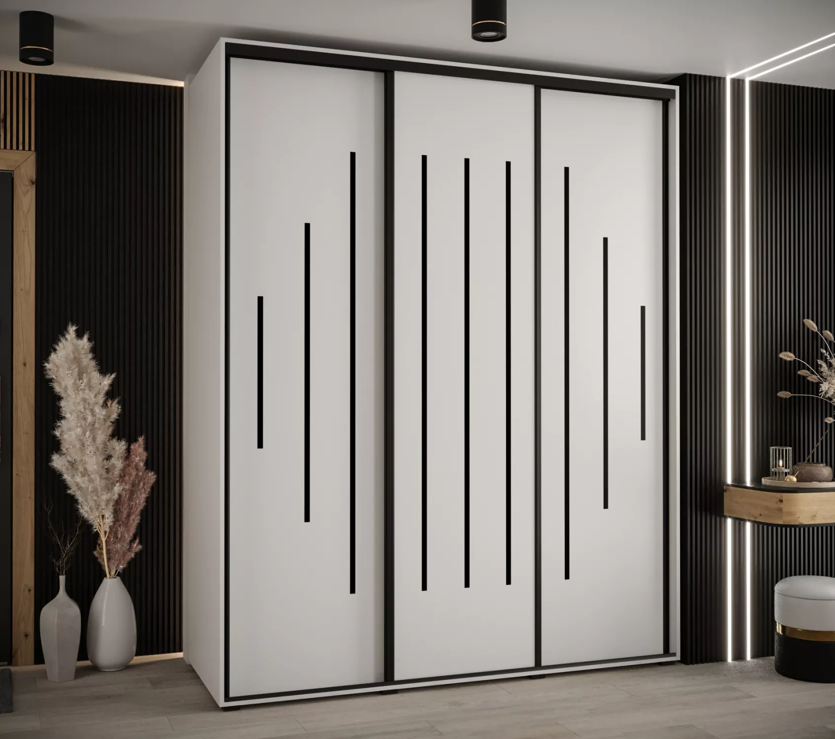 Velká šatní skříň ASIRI zaujme svým moderním designem a praktickými prvky. Skříň má posuvné dveře, které se neotvírají do prostoru a ušetří tak spoustu místa. Vnitřek skříně lze uspořádat dle vašich potřeb.