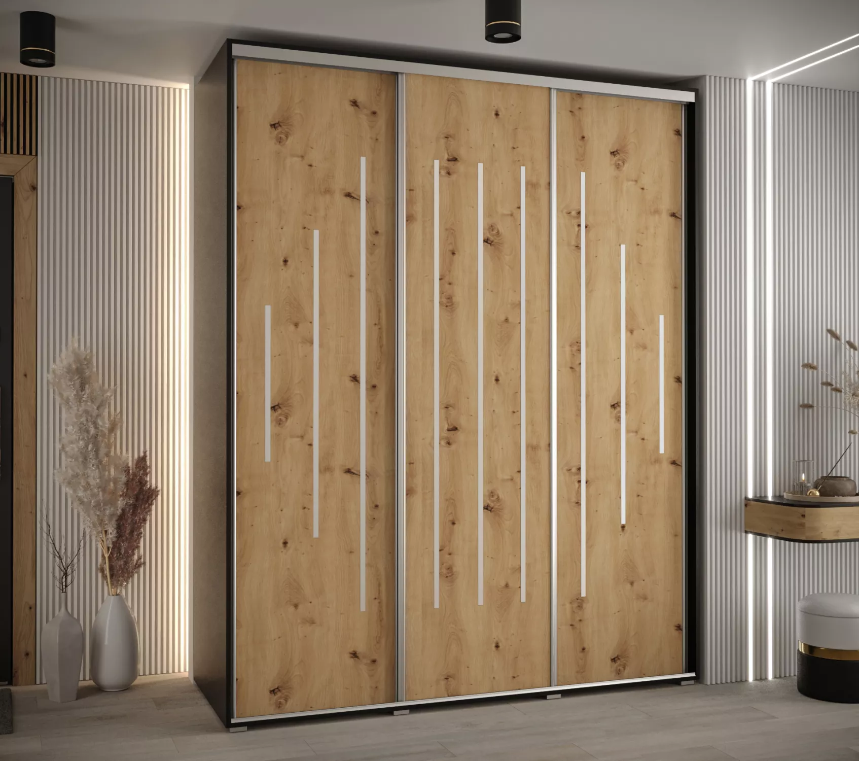 Velká šatní skříň ASIRI zaujme svým moderním designem a praktickými prvky. Skříň má posuvné dveře, které se neotvírají do prostoru a ušetří tak spoustu místa. Vnitřek skříně lze uspořádat dle vašich potřeb.