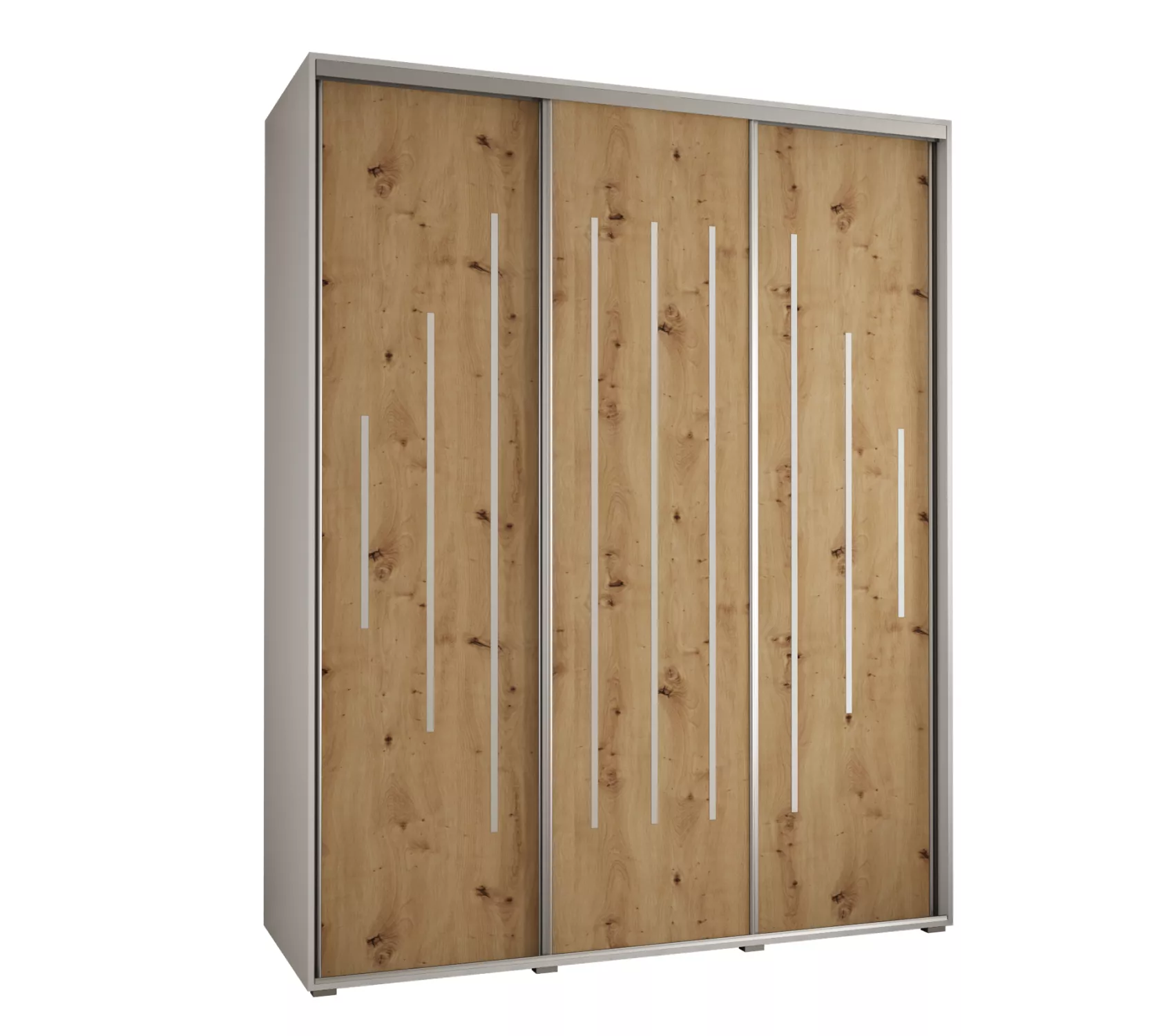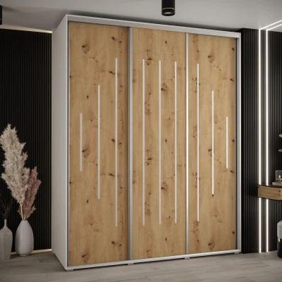 Šatní skříň ASIRI 12 - 200/60 cm, bílá / dub artisan / stříbrná