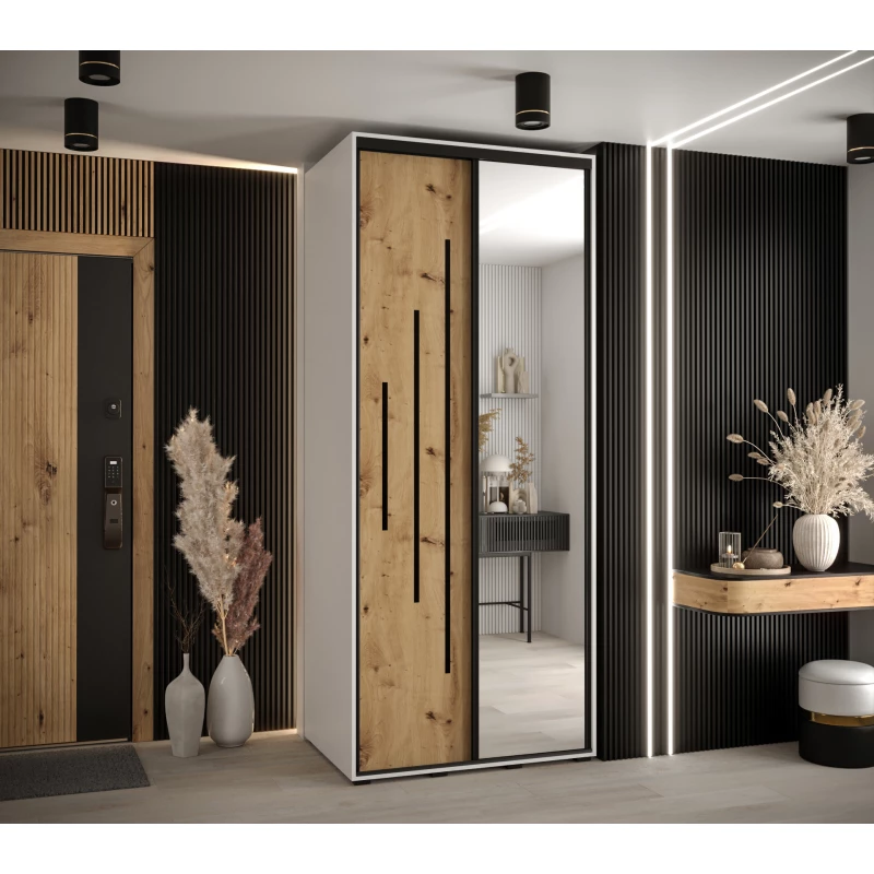 Šatní skříň ASIRI 13 - 100/60 cm, bílá / dub artisan / černá