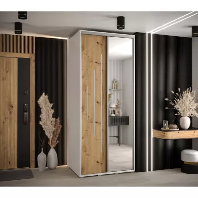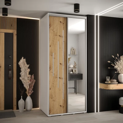 Šatní skříň ASIRI 13 - 100/60 cm, bílá / dub artisan / stříbrná
